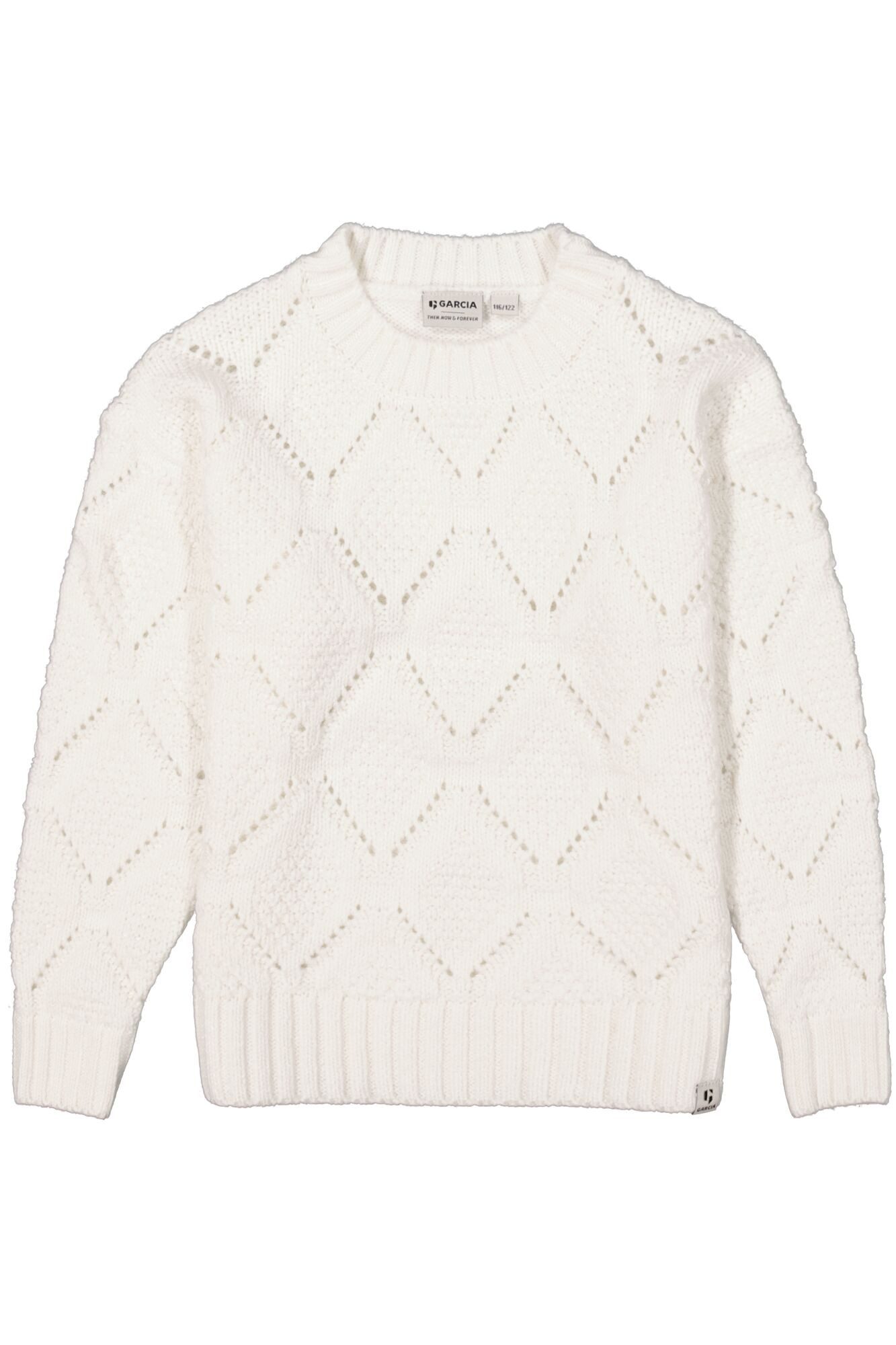 Der Strickpullover von Garcia für Mädchen kombiniert weiches Material mit einem klassischen Rautenmuster und bequemer Passform. Ideal für Kindergarten und Freizeit, lässt er sich vielseitig stylen und bietet angenehme Wärme an kühlen Tagen.