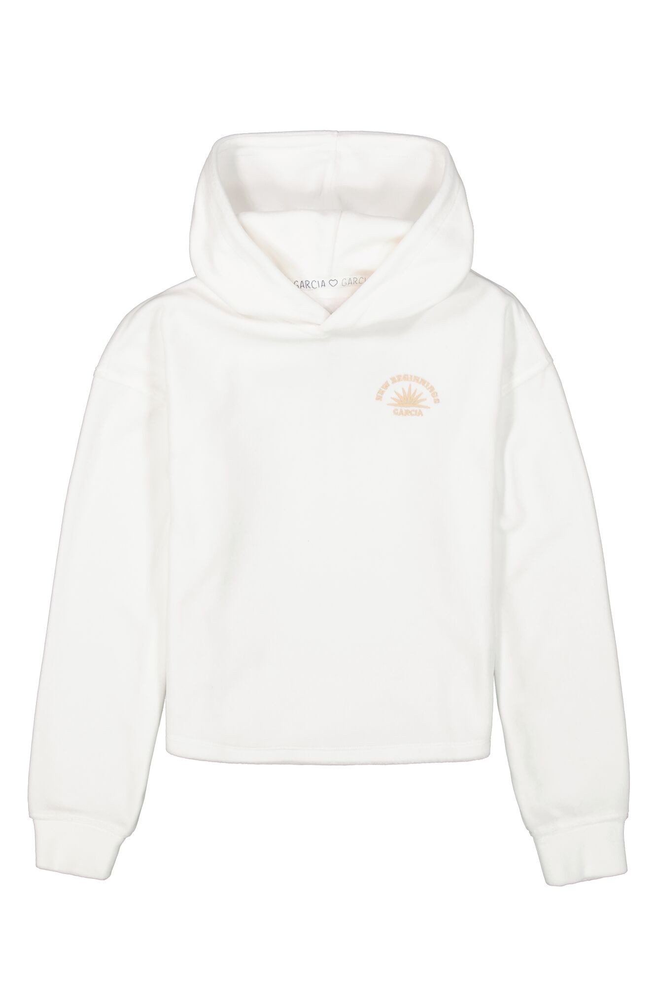 Der Garcia Hoodie für Mädchen vereint stilvolles Design mit komfortabler Funktionalität. Aus weichem Nicky Velours gefertigt, bietet er Tragekomfort und ist gleichzeitig strapazierfähig. Das klassische Weiß macht ihn zu einem vielseitigen Begleiter für verschiedene Anlässe. Mit einem subtilen Logo als Blickfang, kurzer Schnittführung und einer Kombination aus Eleganz und Lässigkeit, ist dieser Hoodie ideal für Schule, Freizeit und Entspannung zu Hause. Maschinenwaschbar und pflegeleicht, ist er die perfekte Ergänzung für die Garderobe modebewusster Mädchen.