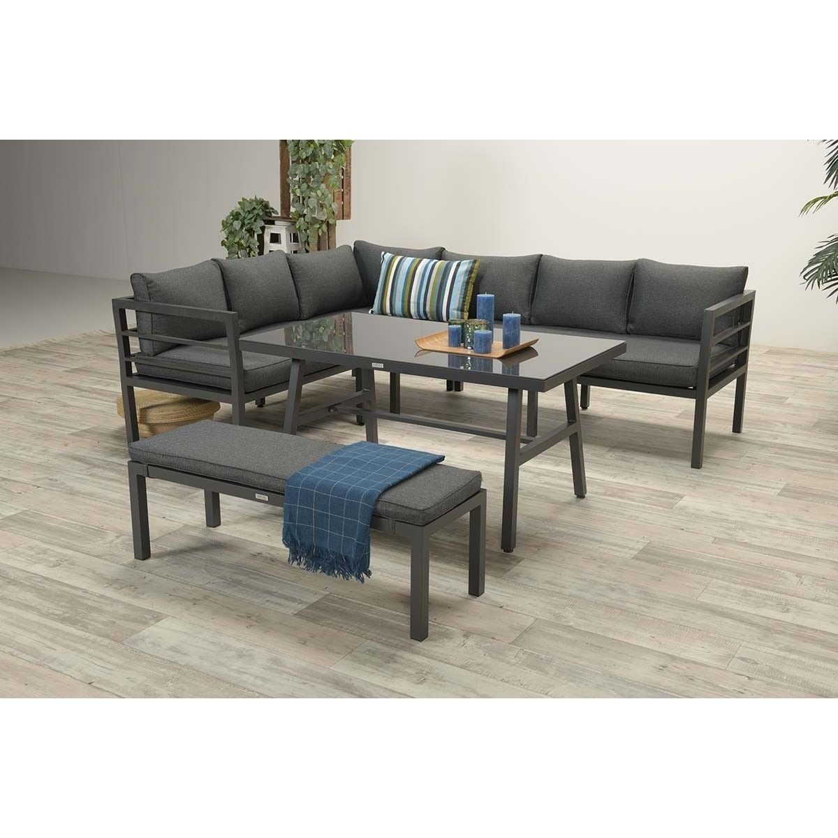 Set beinhaltet | Ecklounge + Tisch in Dininghöhe + 2er Bank |