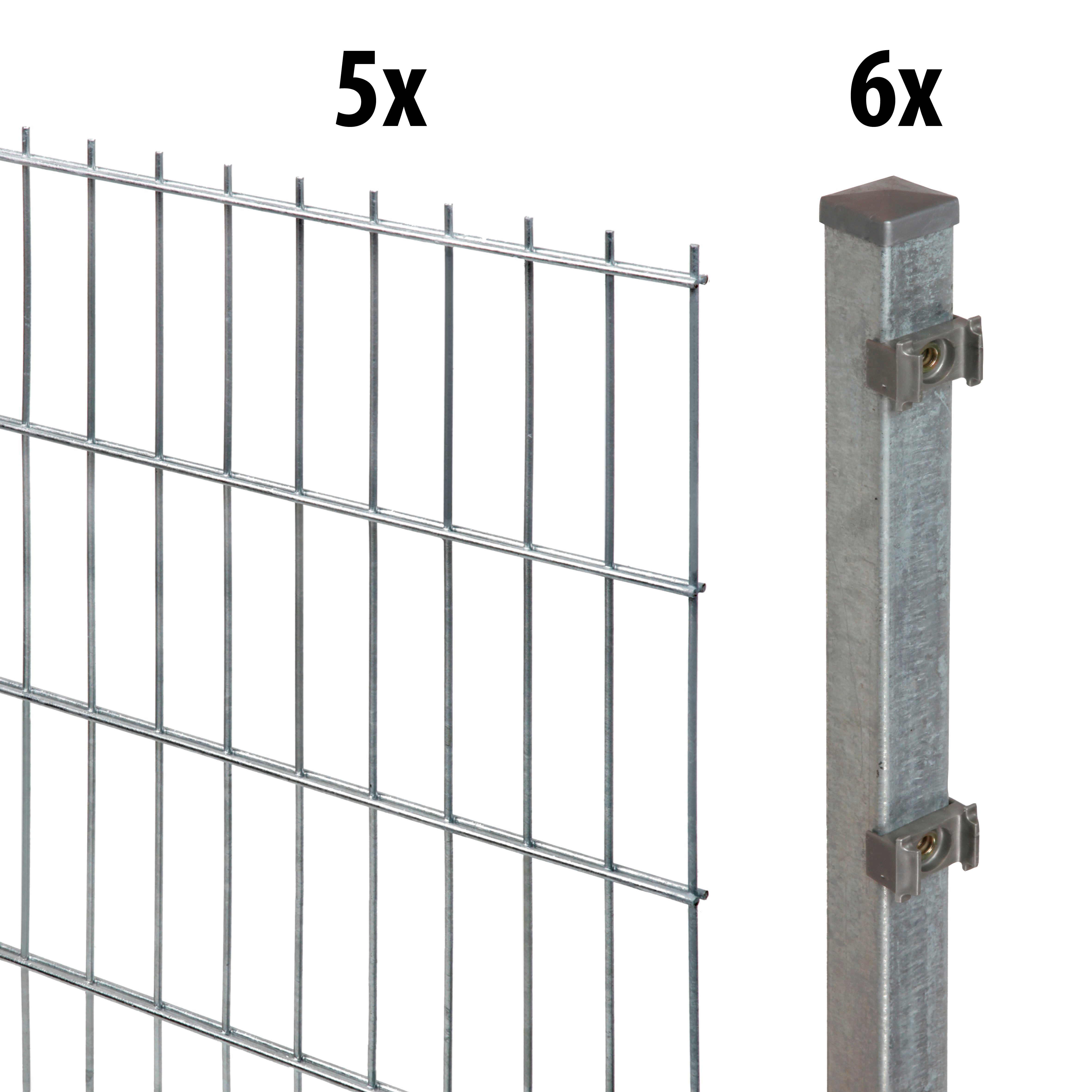 5 Doppelstab-Zaunmatten mit je 201 x 203 cm, 6 Zaunpfosten