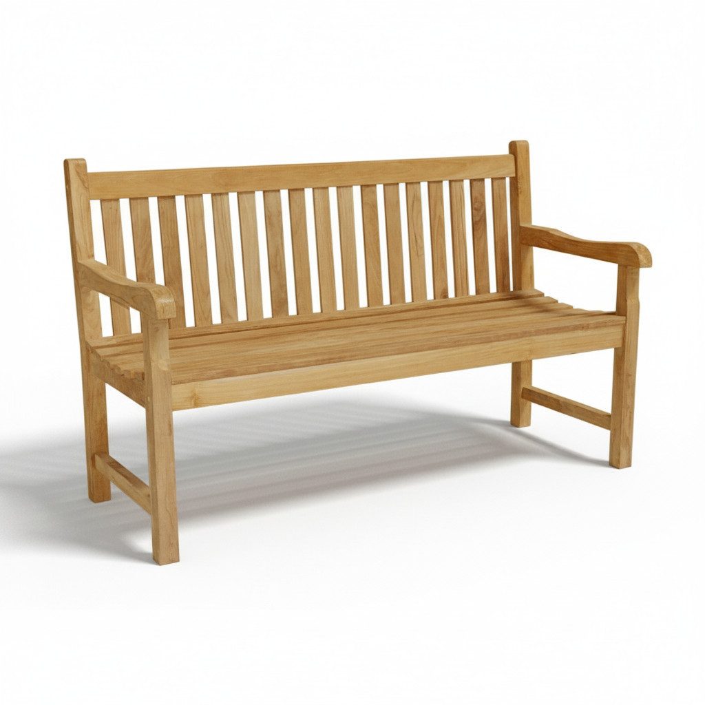 die Gartenbank ist aus Teak gefertigt und hat sehr stabile Zapfenverbindung und Verschraubungen mit Metallgewinde.
