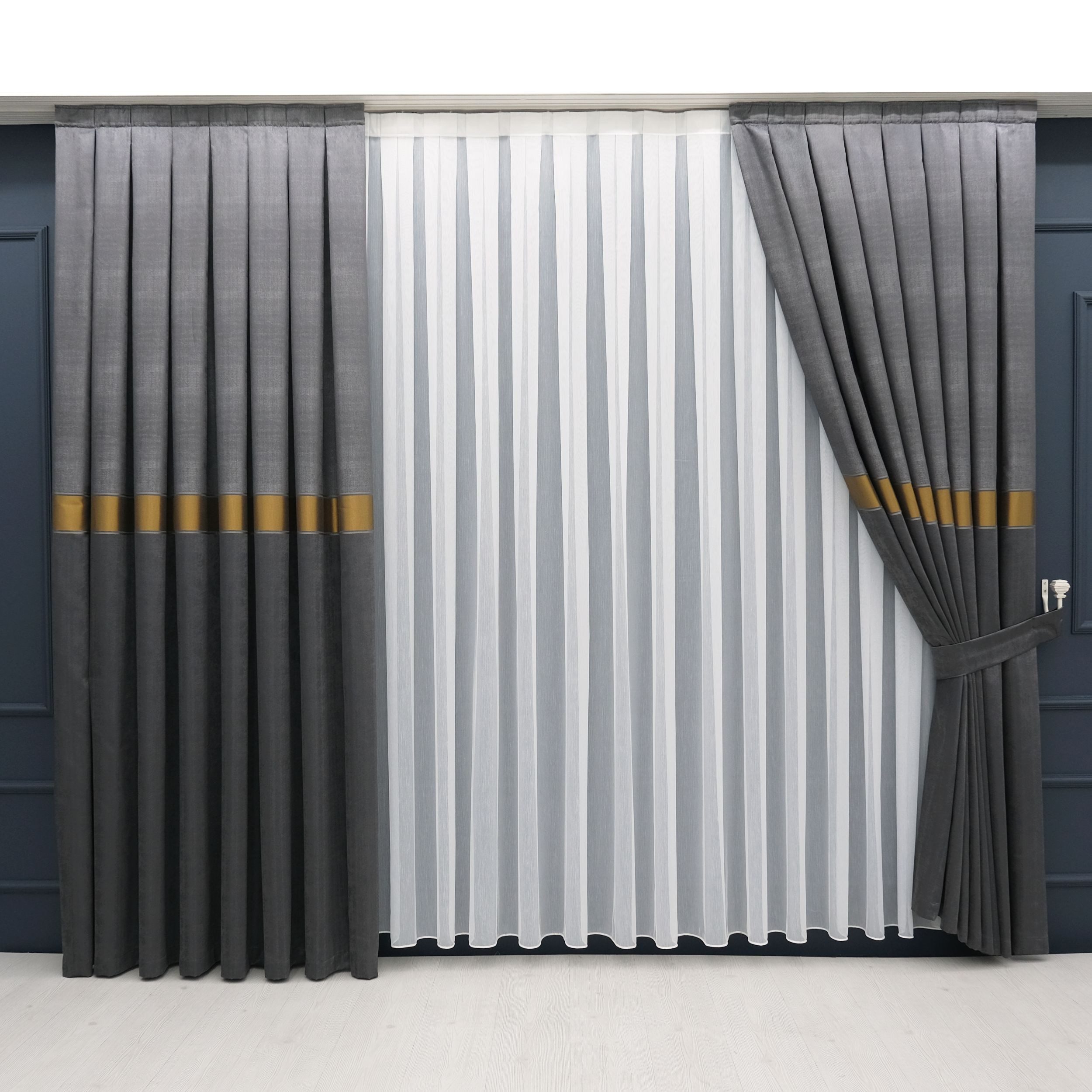 2 x Seitenschals 2x Raffhalter 1x Weißer Gardine Store