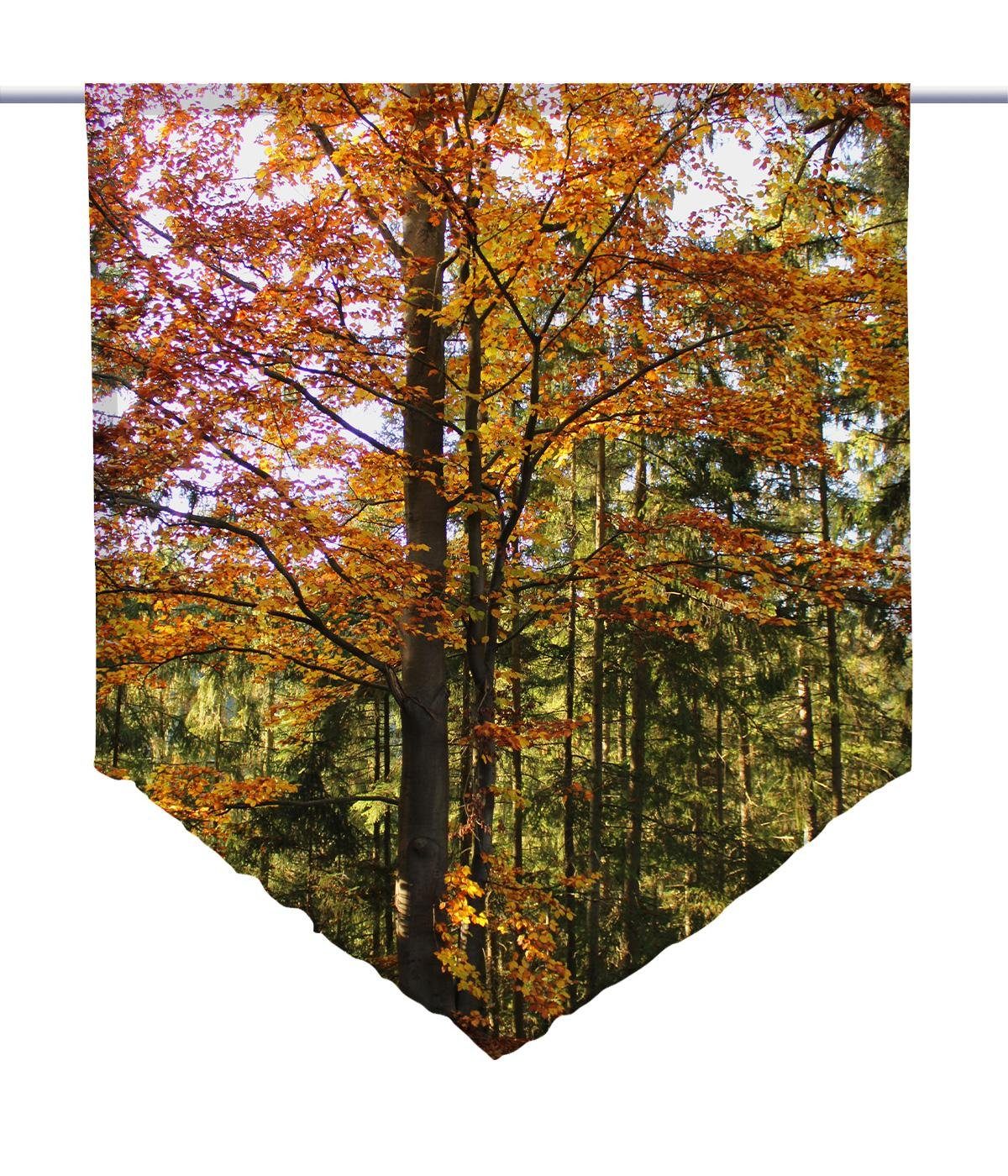 Dieser tolle herbstliche Scheibenhänger von gardinen-for-life lässt Ihren Raum in der Herbstsonne erstrahlen und Sie in einen wunderschönen herbstlichen Wald eintauchen. Der Scheibenhänger "Wegesrand" aus feiner transparenter Voile gibt Ihnen mit seinem sehr schönen Motiv an kühlen Herbsttagen ein wohliges Gefühl! Der Scheibenhänger verfügt oben über einen Saum um ihn an einen Scheibenstab zu hängen. Unten hat er eine gekräuselte Spitze! 100% Polyester, waschbar bei 30°C