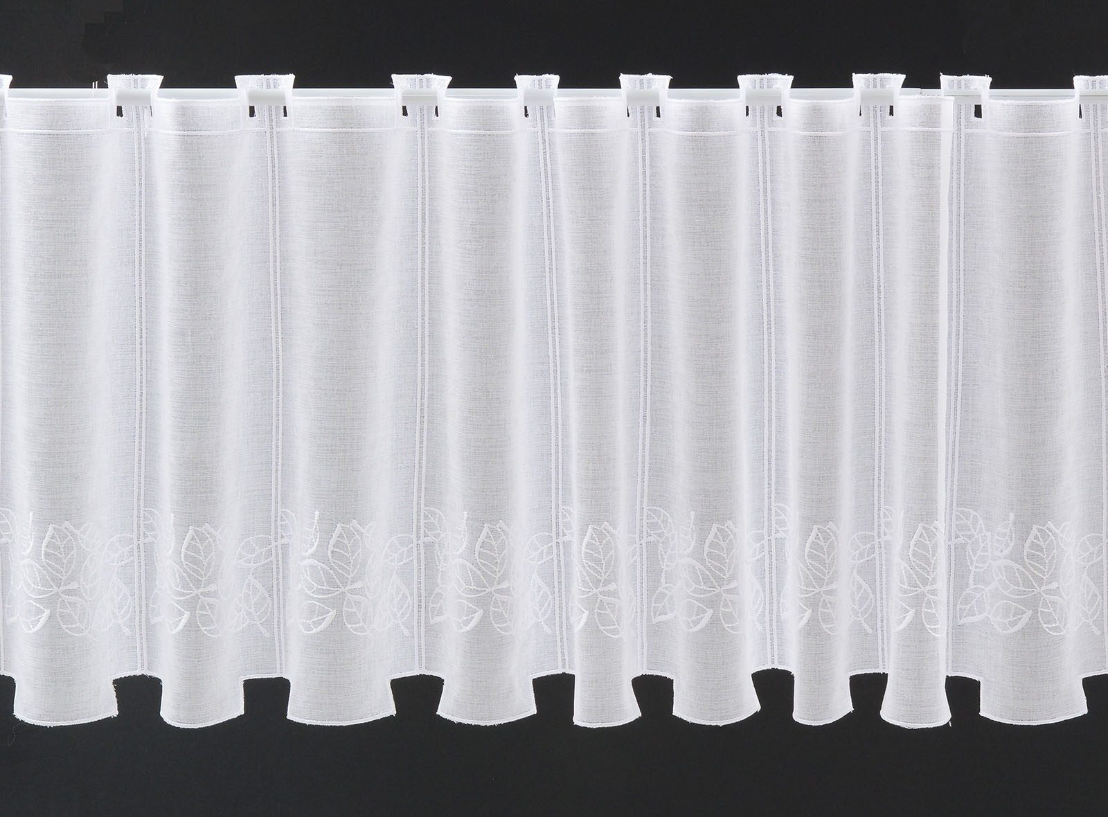 Scheibengardine bestickte Blätter 45 cm hoch weiß - Wunschbreite frei wählbar durch gekaufte Menge in 16 cm Schritten - Meterware