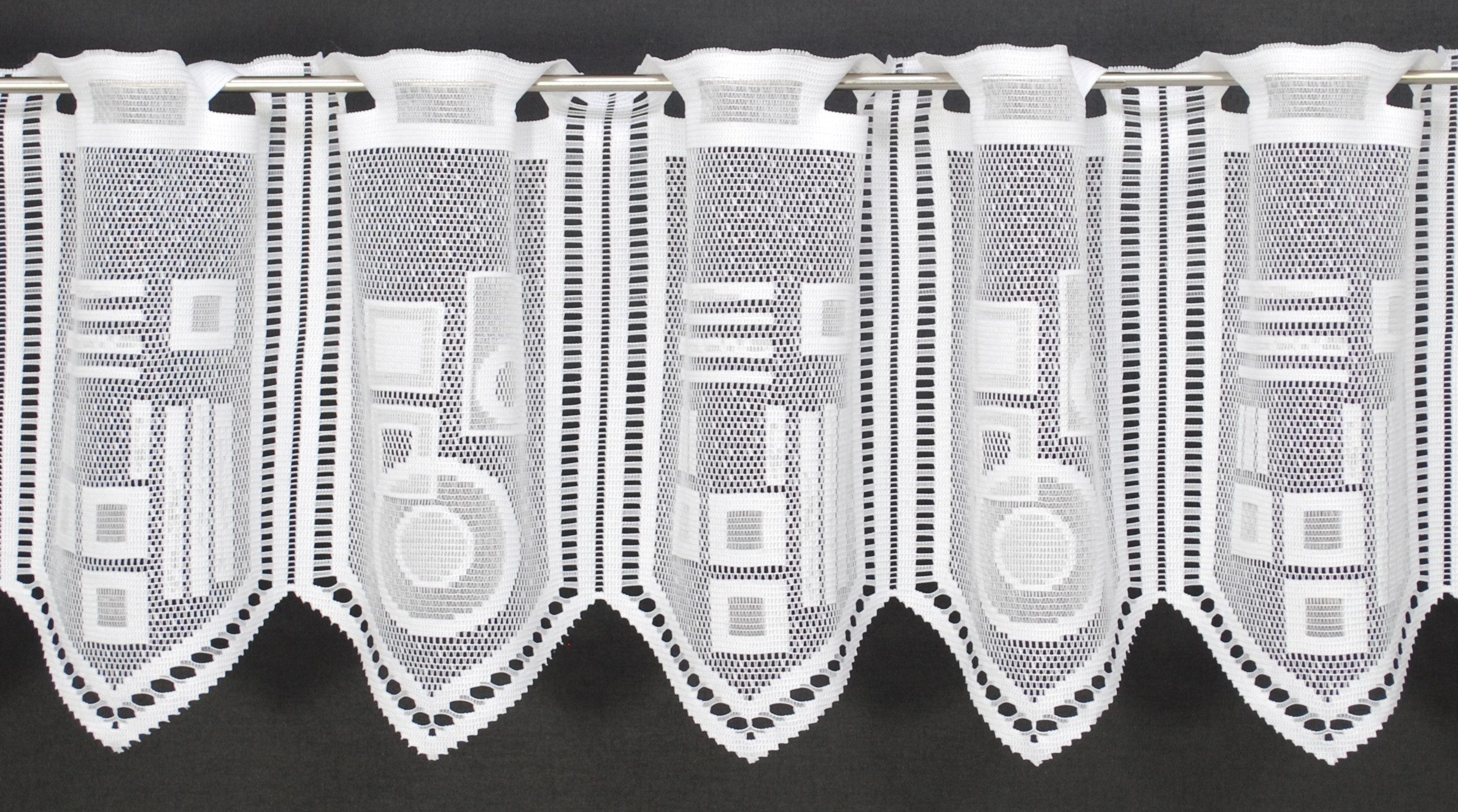 Scheibengardine geometrische Muster 30 cm hoch weiß - Wunschbreite frei wählbar durch gekaufte Menge in 17,5 cm Schritten - Meterware
