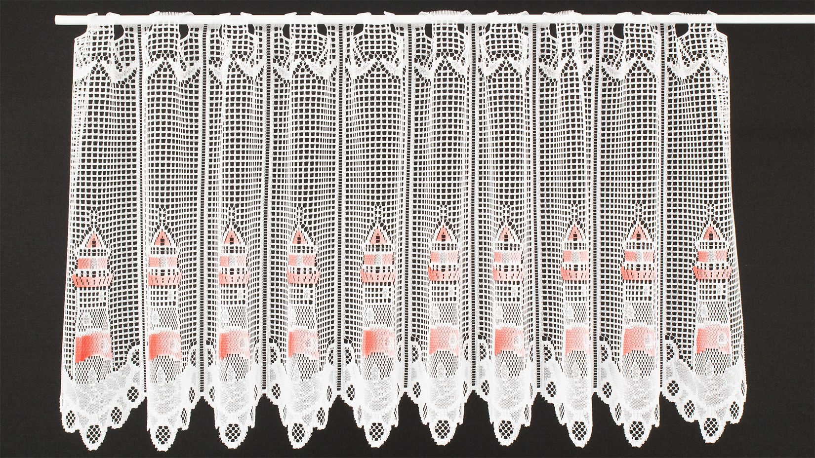 Scheibengardine grober Jacquard Leuchtturm 60 cm hoch weiß - Wunschbreite frei wählbar durch gekaufte Menge in 15,5 cm Schritten - Meterware