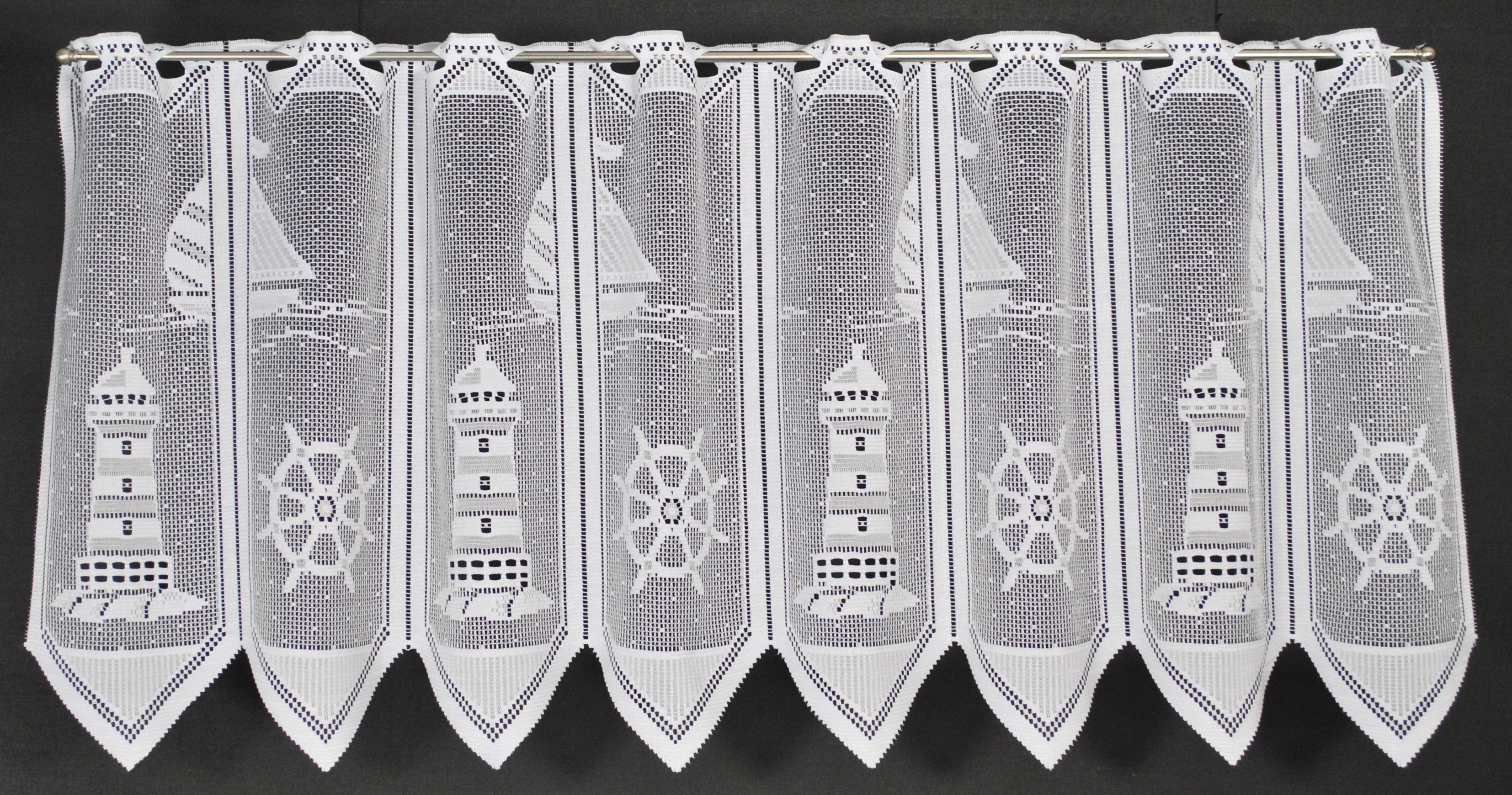 Scheibengardine Leuchtturm 45 cm hoch Weiß - Wunschbreite frei wählbar durch gekaufte Menge in 28,5 cm Schritten - Meterware