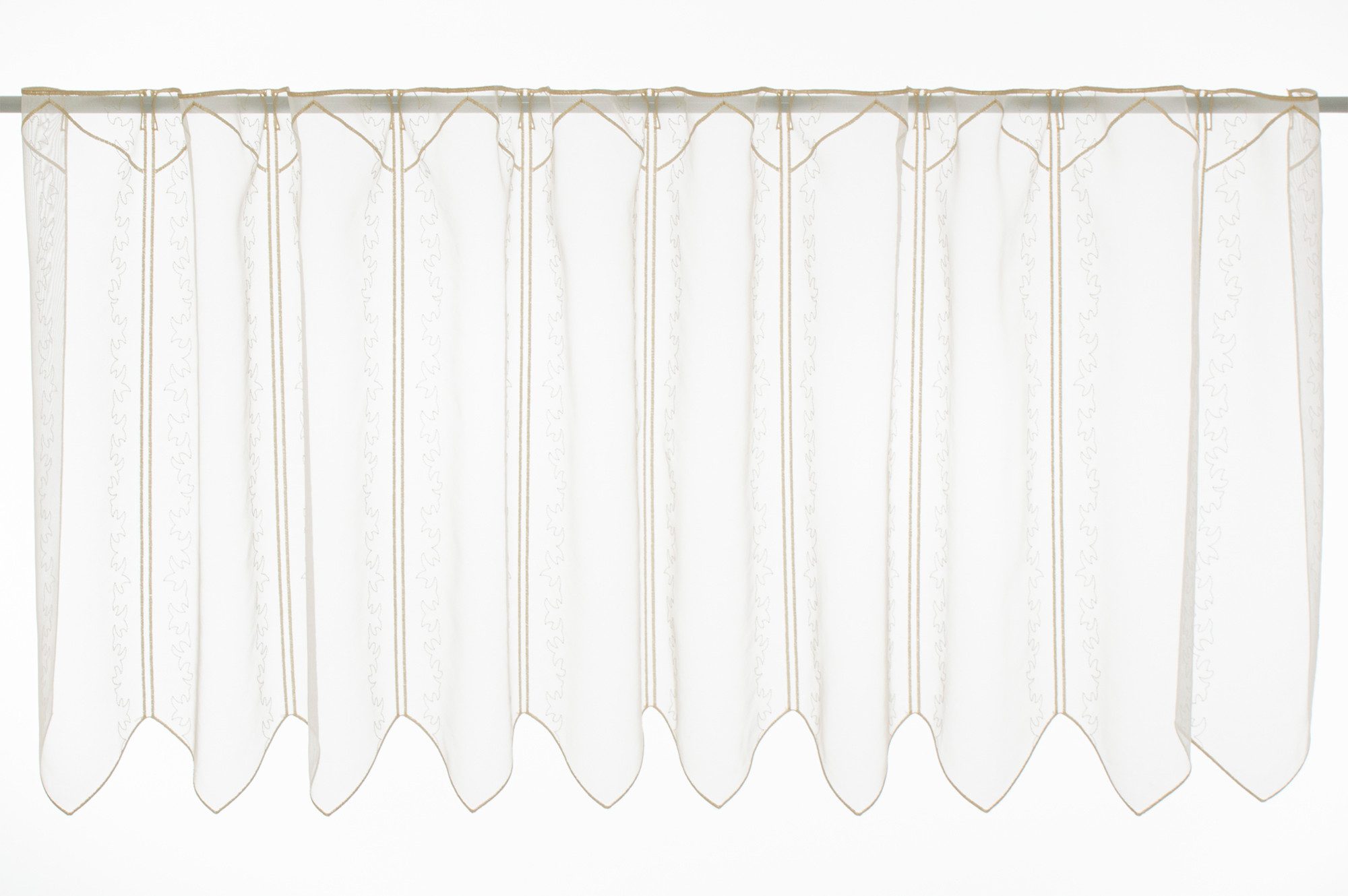 Scheibengardine feiner Ranken-Stickerei 50 cm hoch weiß natur - Wunschbreite frei wählbar durch gekaufte Menge in 16 cm Schritten - Meterware