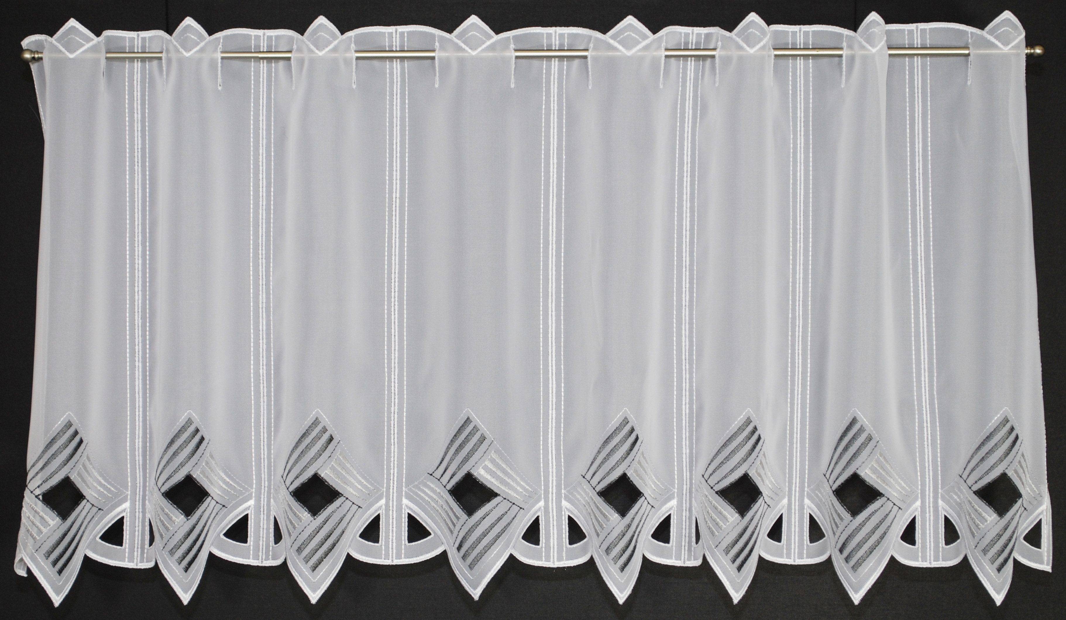 Scheibengardine moderne Lochstickerei 45 cm hoch grau/anthrazit - Wunschbreite frei wählbar durch gekaufte Menge in 16 cm Schritten - Meterware