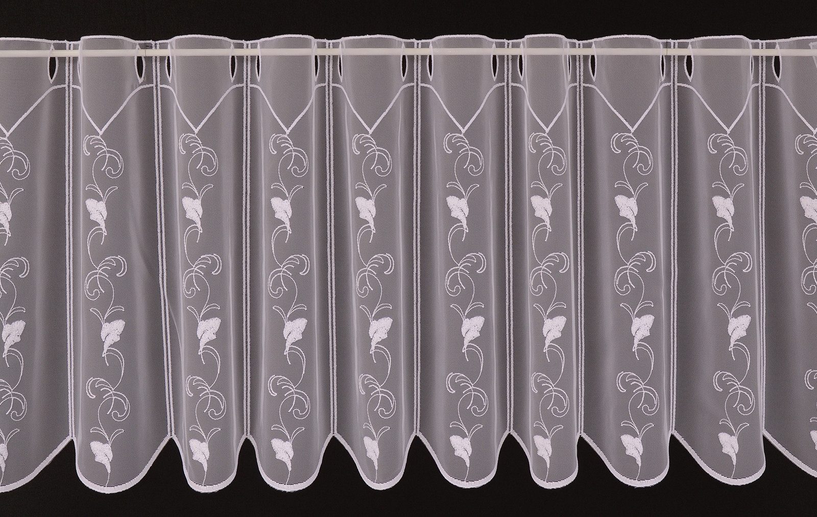 sehr transparente Scheibengardine hoch/tief Blumenstickerei 45 cm hoch weiß - Wunschbreite frei wählbar durch gekaufte Menge in 16 cm Schritten - Meterware
