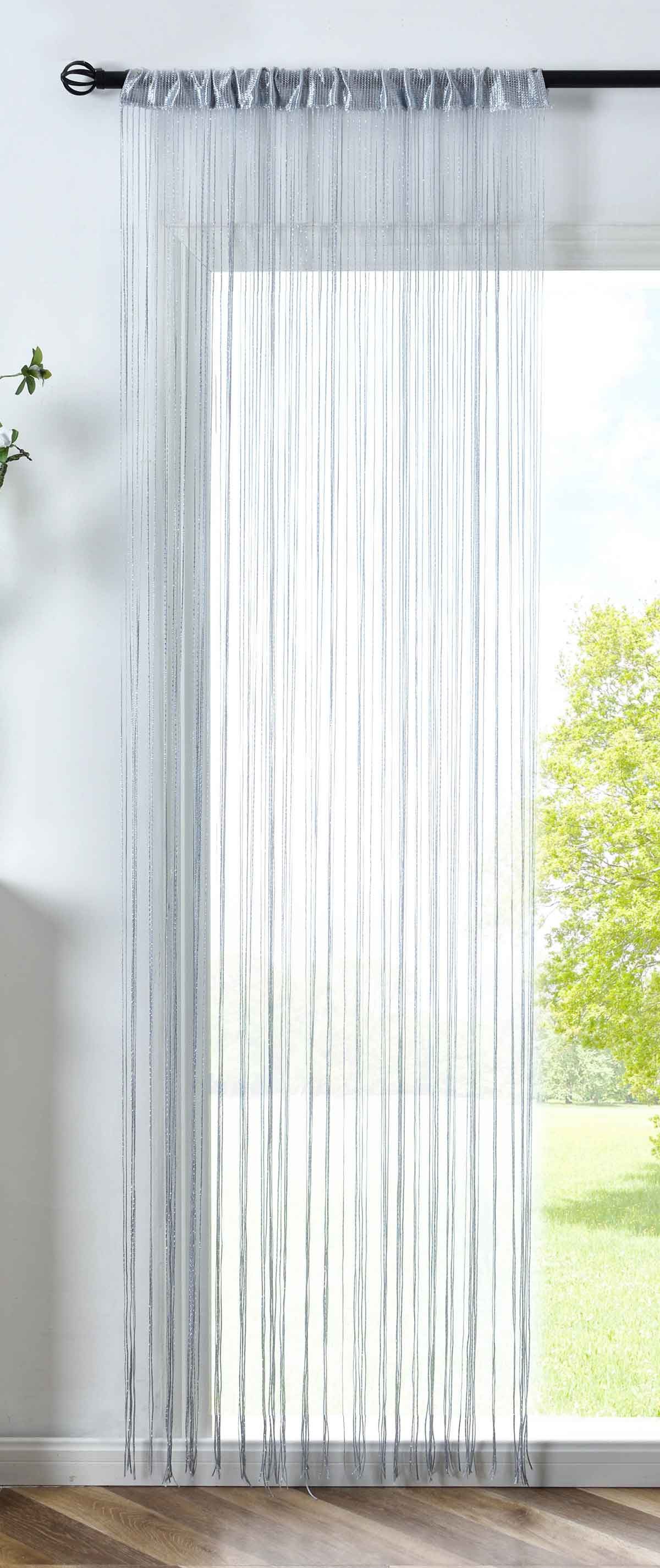 Hinweis Aufhängung | Dank Tunneldurchzug ist die Fadengardine schnell und unkompliziert an Gardinenstangen anzubringen. Ein zusätzliches Gardinenband sorgt für Aufhängungsmöglichkeiten an Gardinenschienen und Innenlaufschienen. |