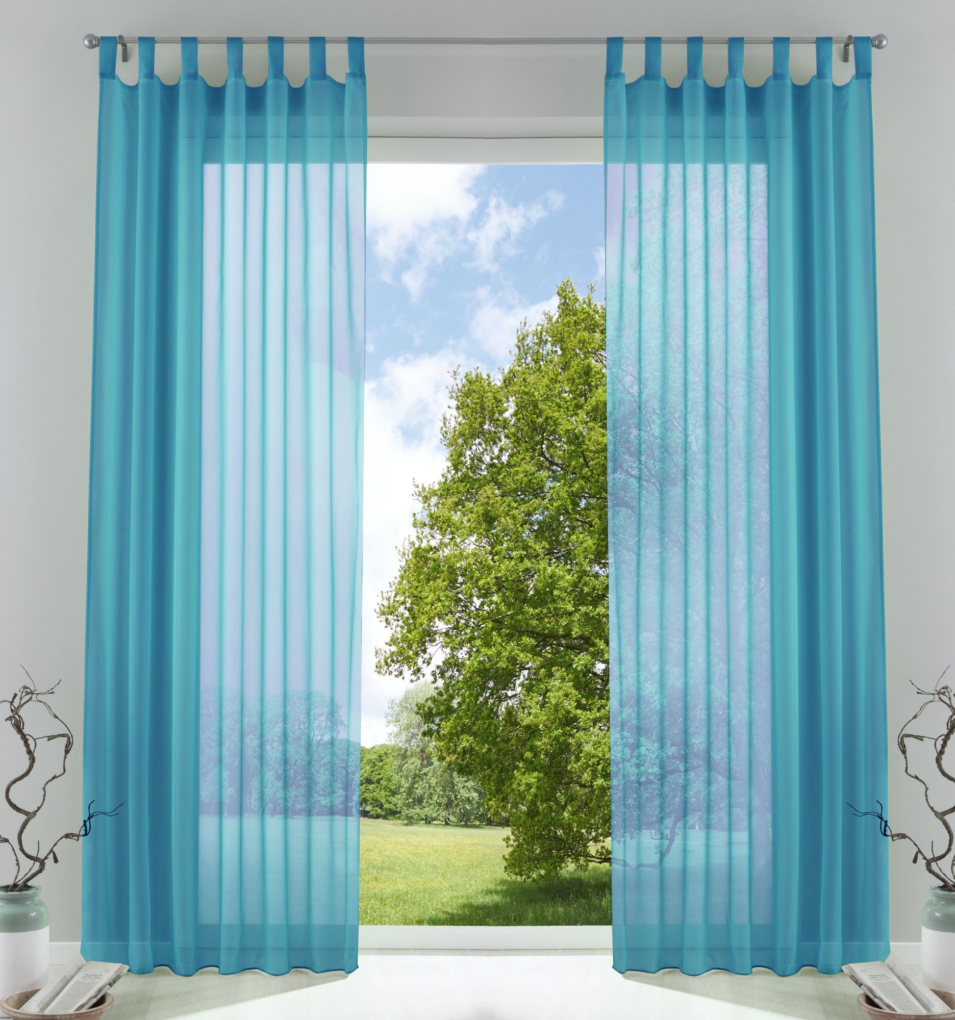 Die unifarbene Gardinen sind mit Schlaufen und eingenähtem Kräuselband ausgestattet. Das dicht gewebte Voile Gewebe sorgt für leichten Sonnenschutz.