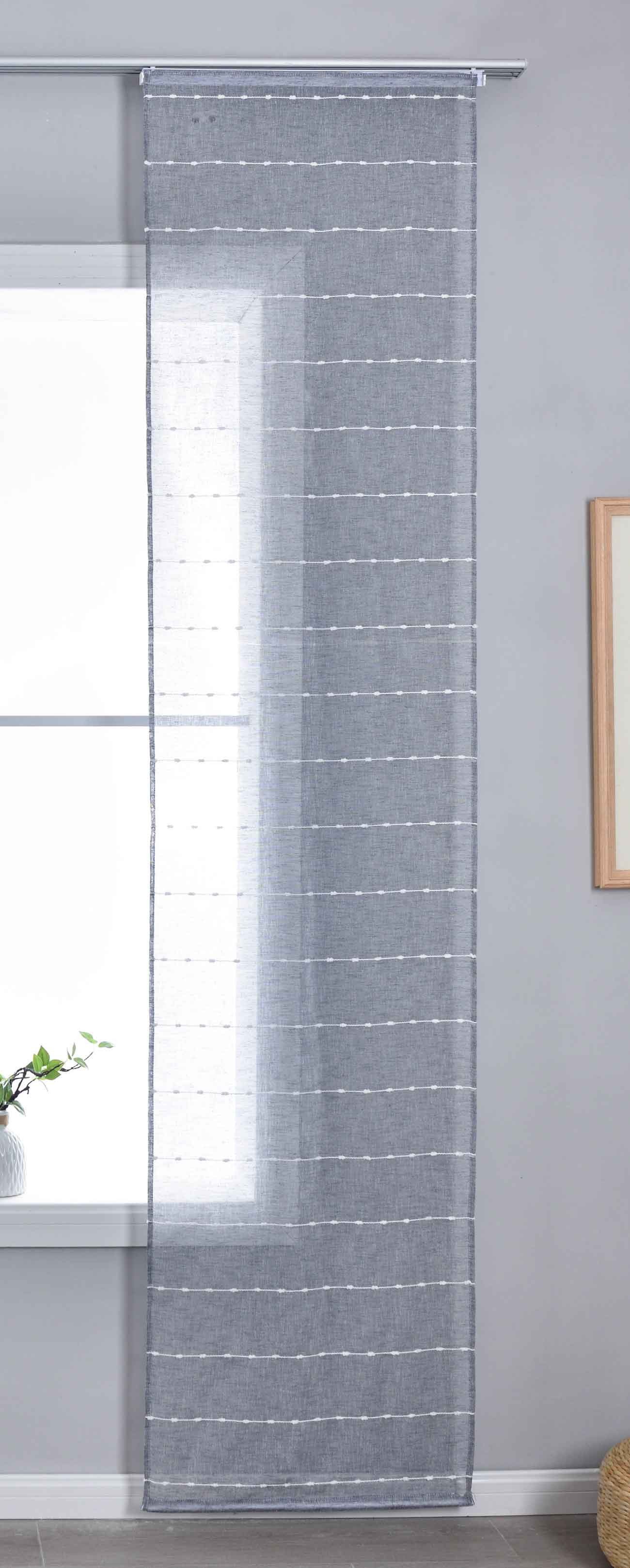Hinweis AufhängungBefestigung mit Flauschband einfach abnehmbar und leicht anzubringen, Die Gardinen sind mit Klettband incl. Paneelwagen und Beschwerungsstangen ausgestattet.