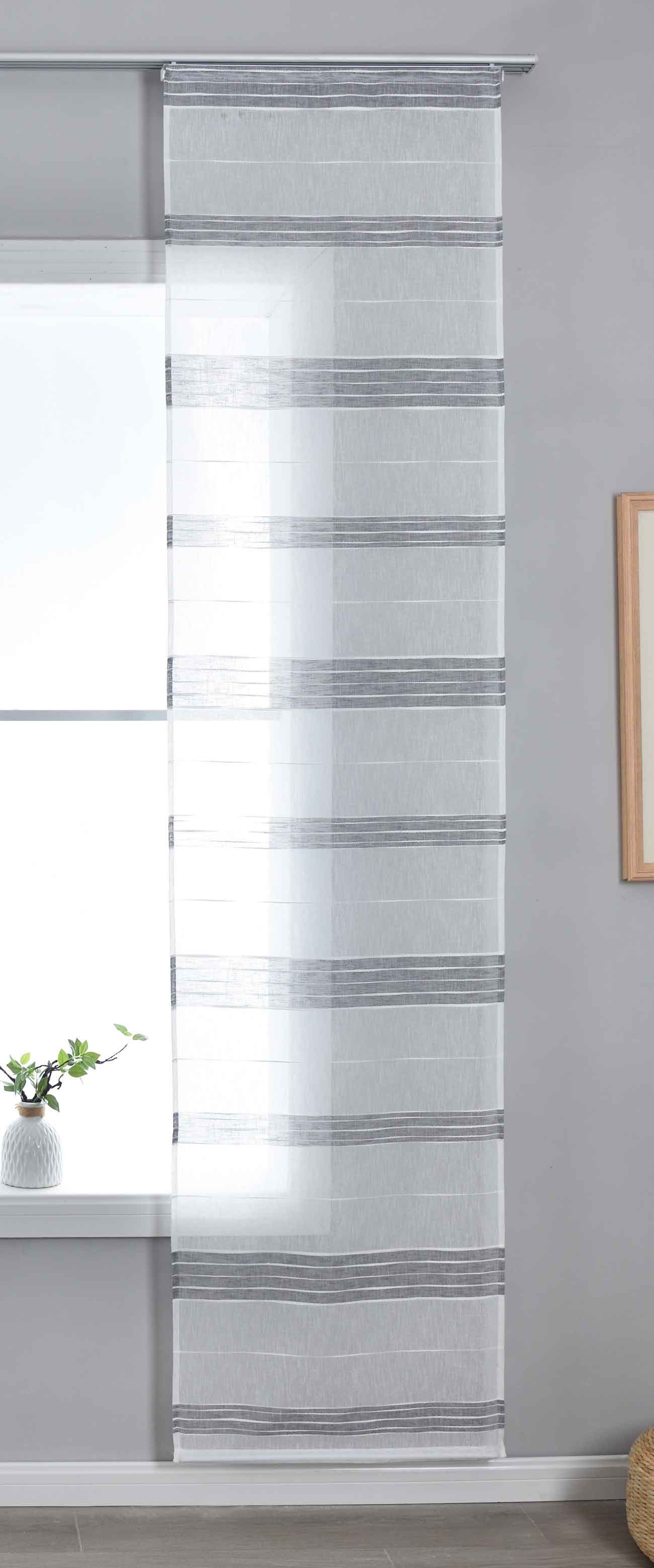 Hinweis Materialart | Breite, horizontal verlaufende Streifen, die aus feinen Linien bestehen, bilden ein wellenartiges Muster. Dieses Design verleiht der Gardine Tiefe und Dynamik. |