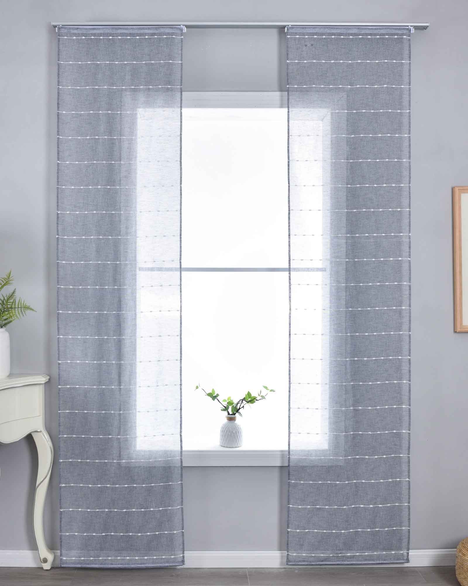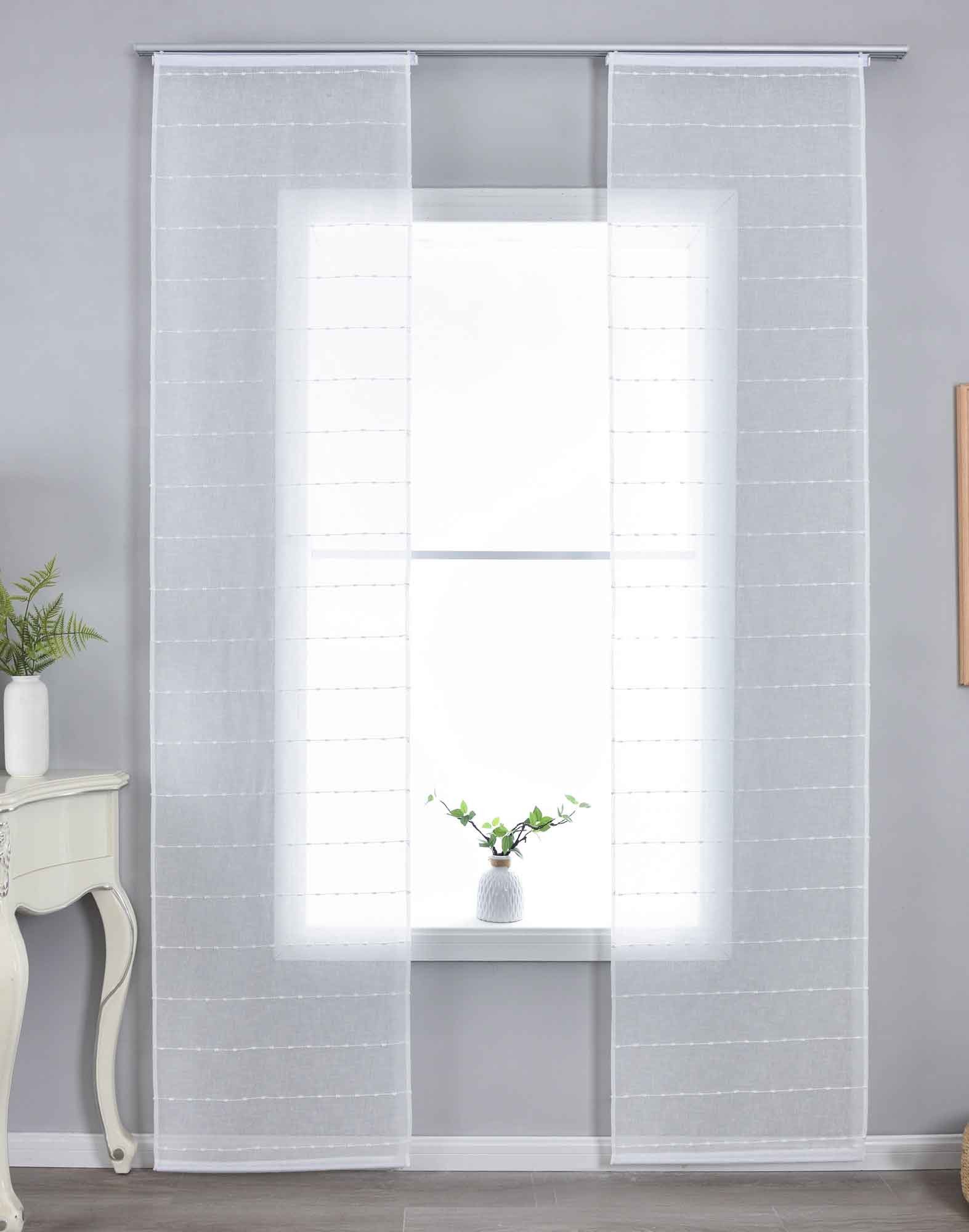 • Lieferumfang: 2 Schiebegardinen mit Paneelwagen, Farbe: Natur. Größe: HxB 245x60 cm, Pflege: Waschbar bis 40 Grad, pflegeleicht, chlorfrei