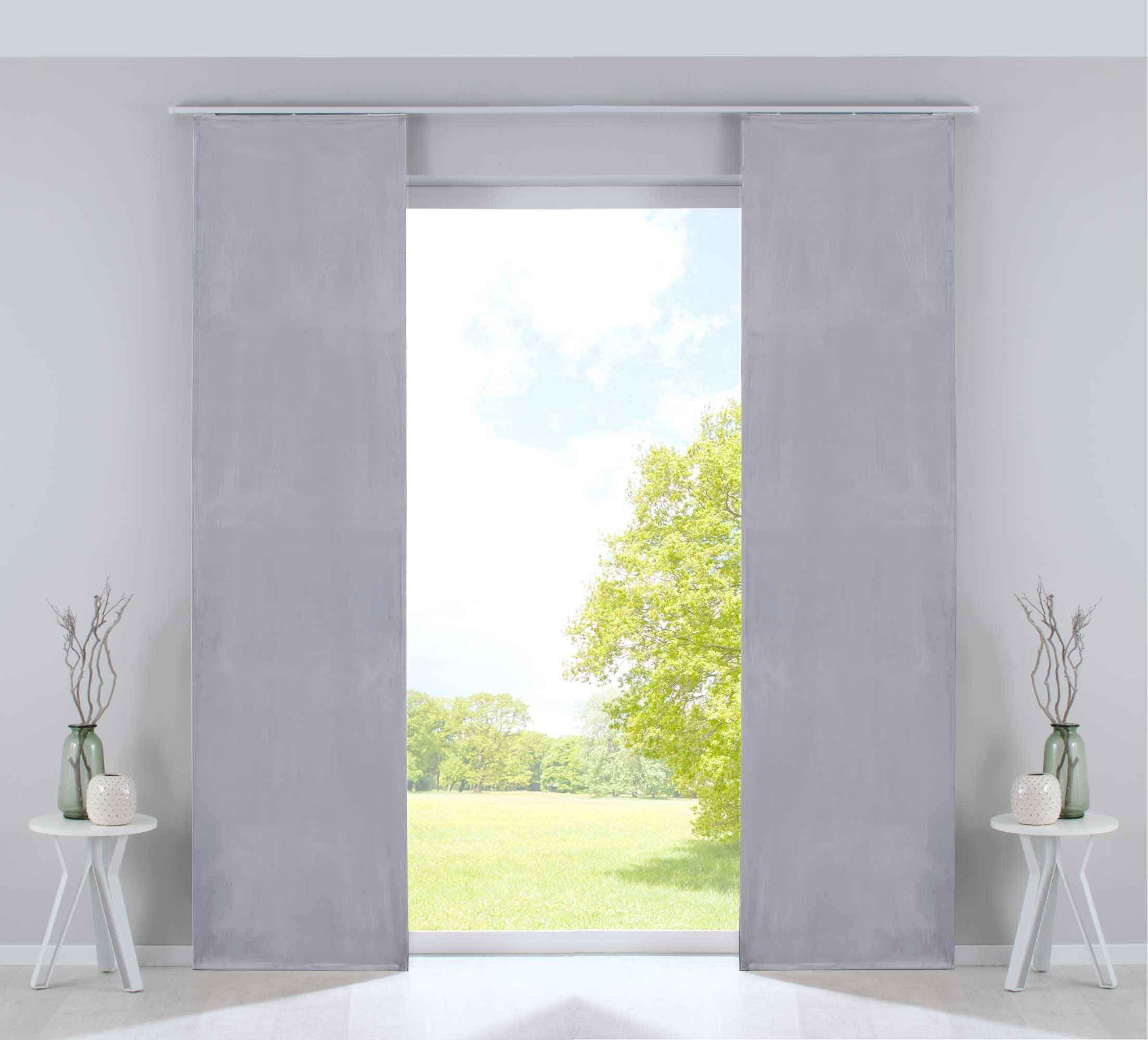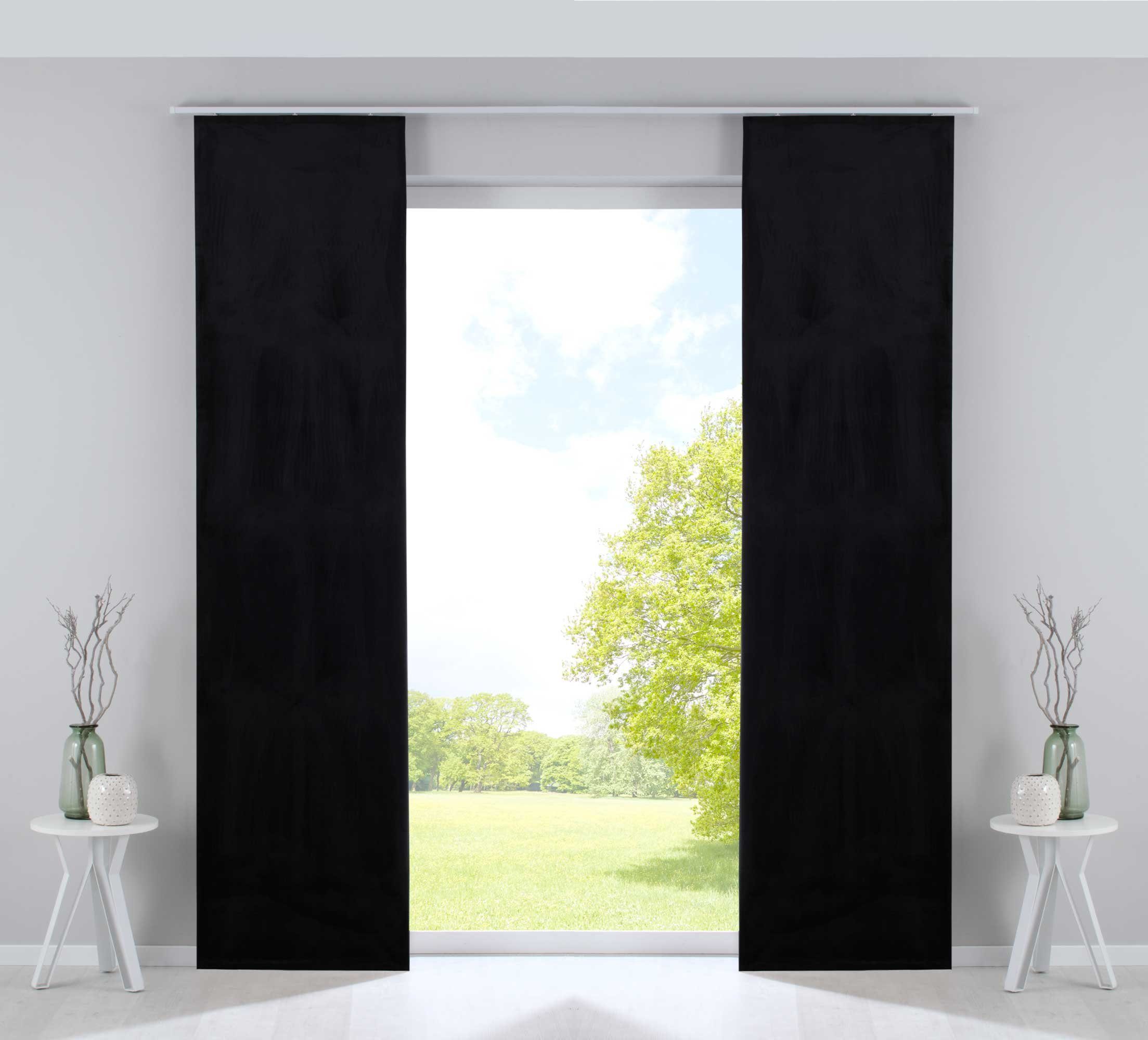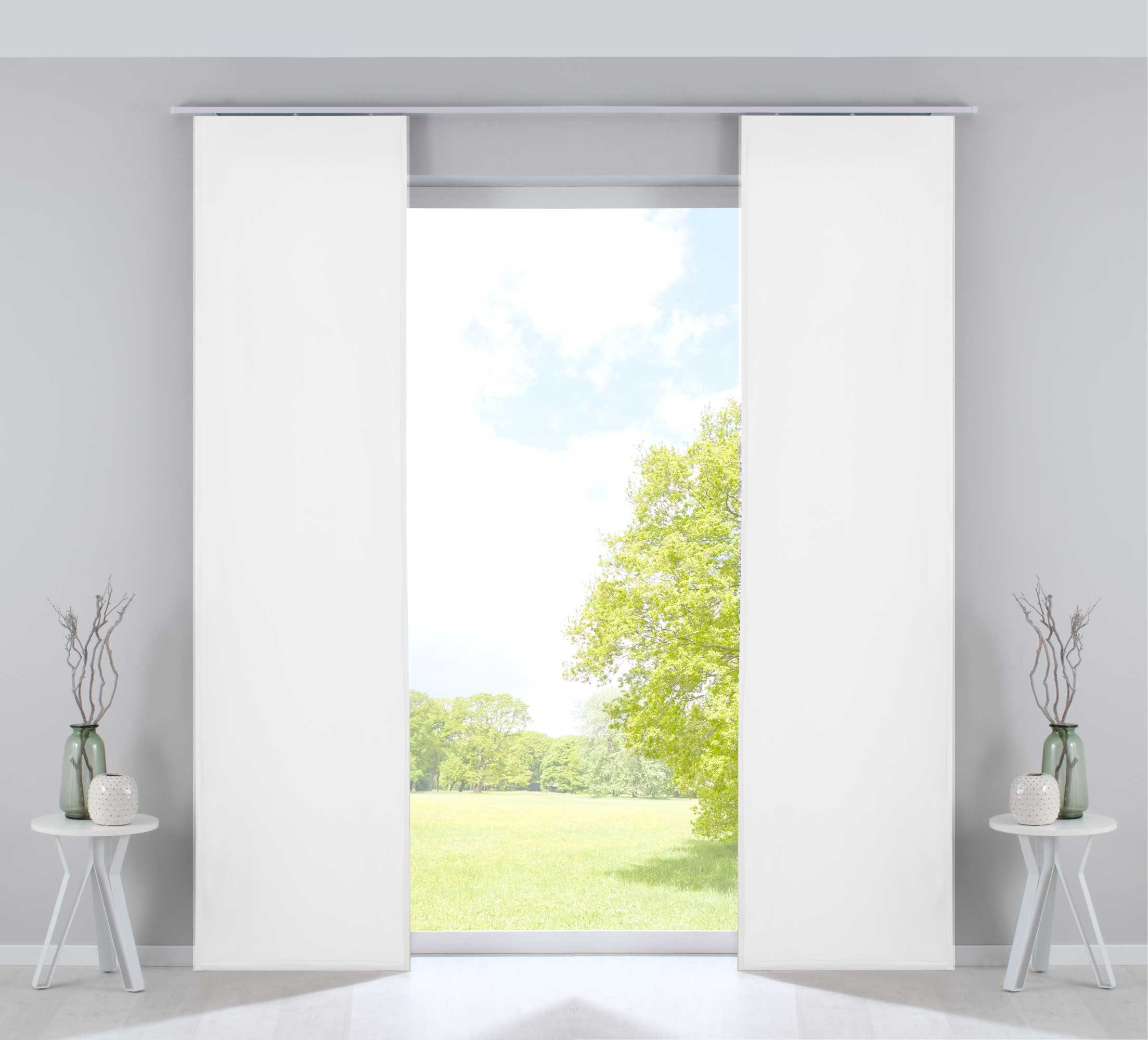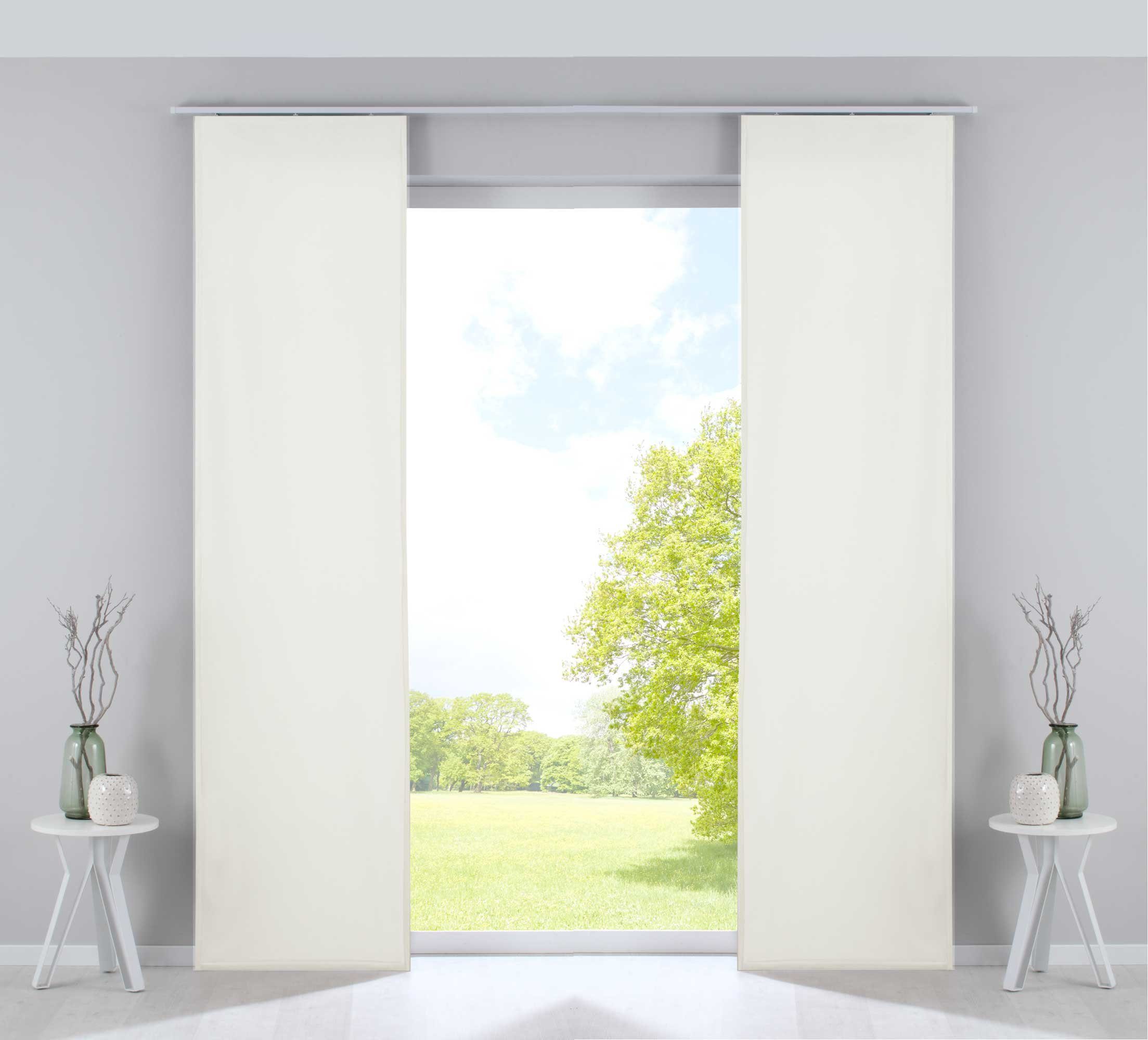 Lieferumfang | 2 Flächenvorhänge mit Paneelwagen und Beschwerungsstangen |