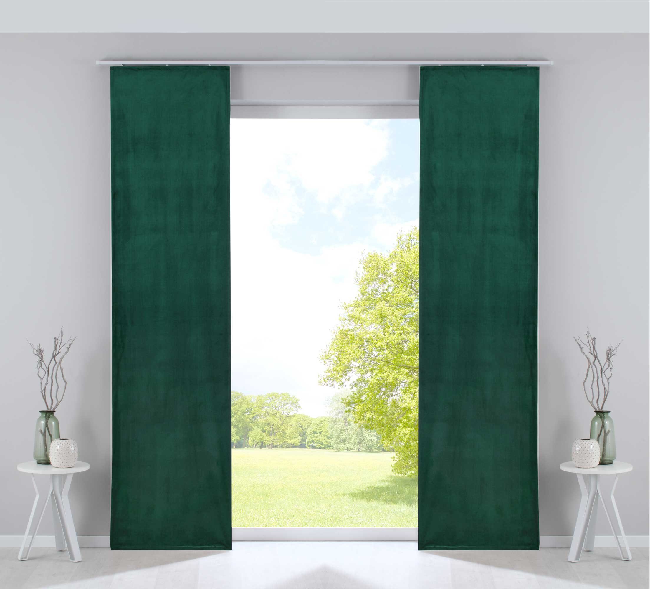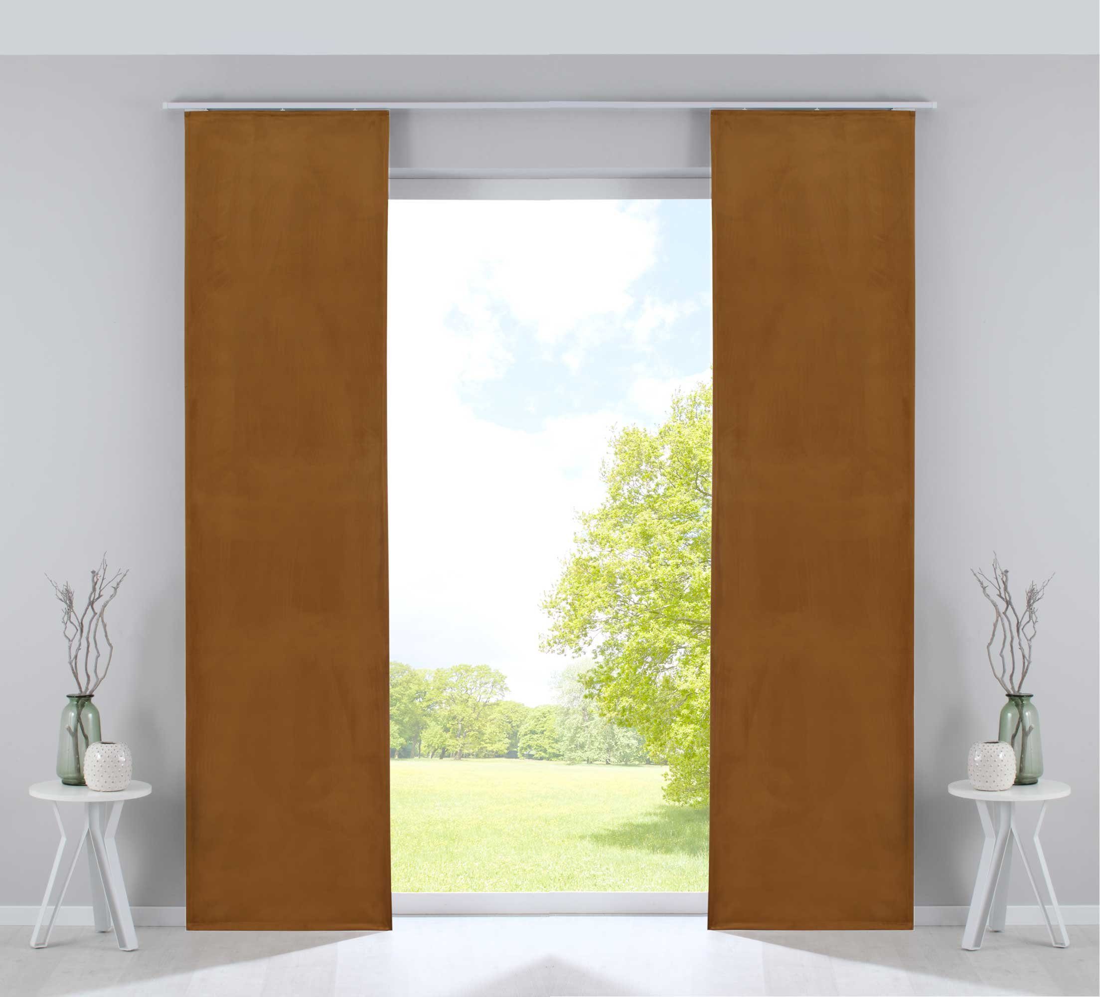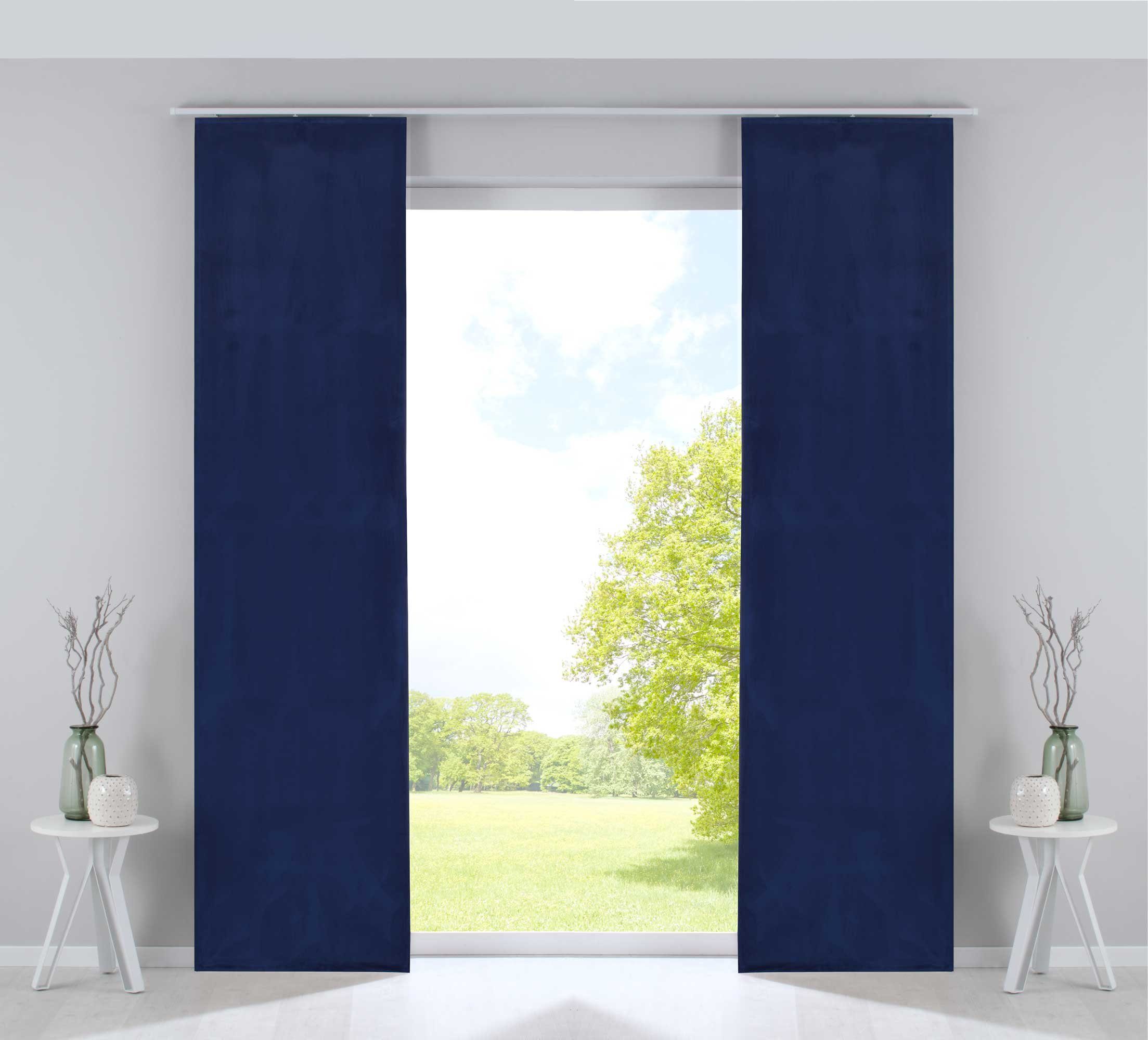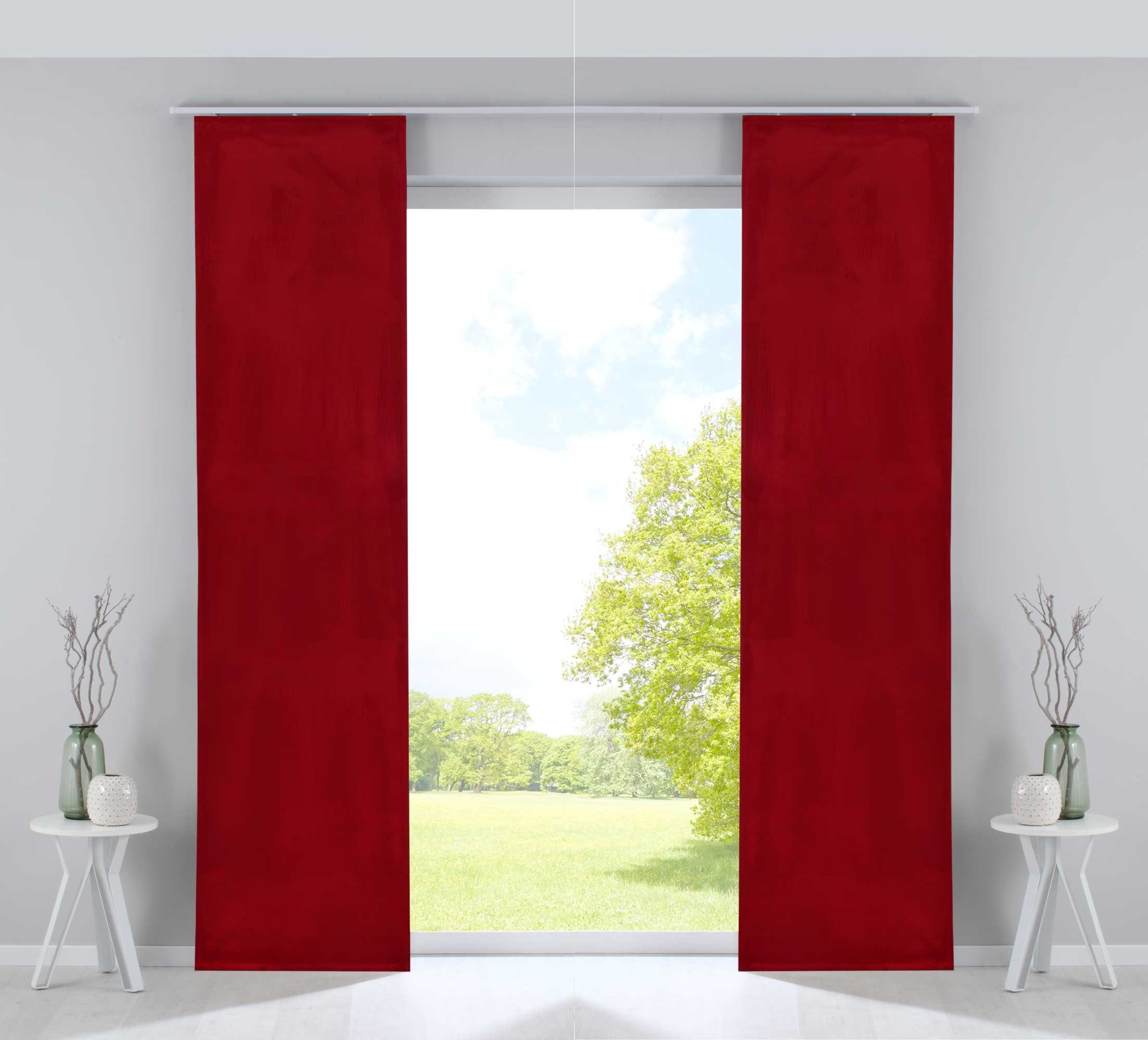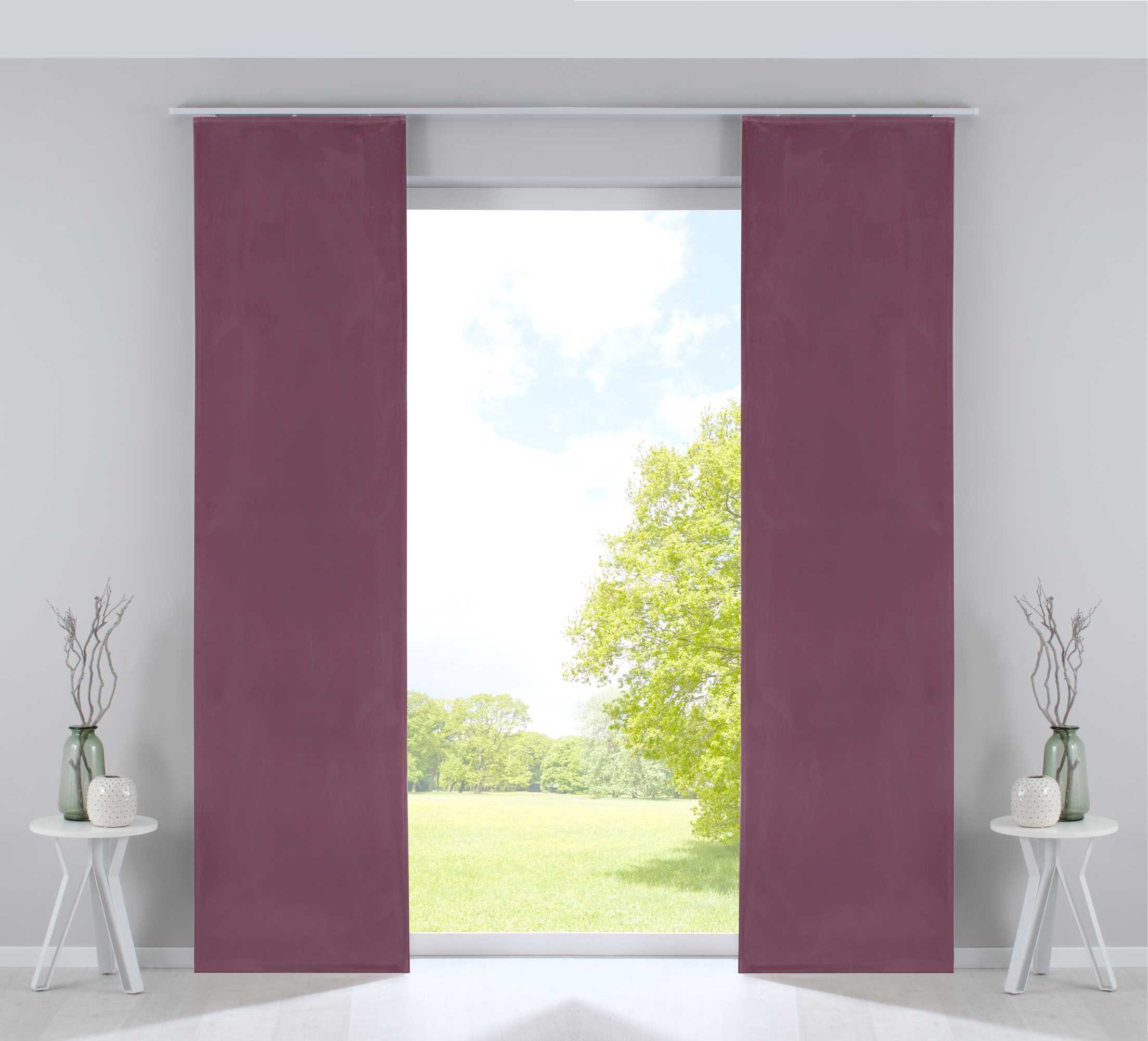 Lieferumfang | 2 Flächenvorhänge mit Paneelwagen und Beschwerungsstangen |
