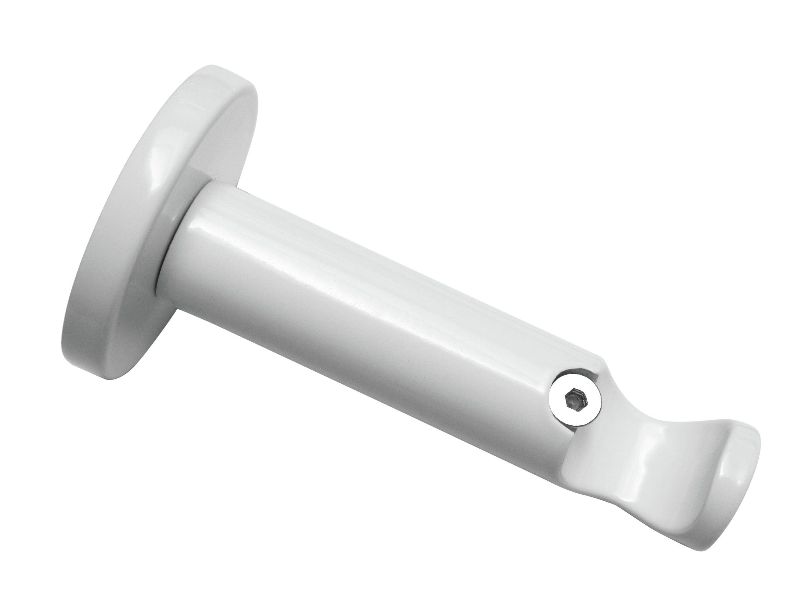 Beschreibung | Metall, für Dekorationen mit einer Gardinenstange oder Gardinenstange mit Innenlauf (Fixierung der Gardinenstange mittels Schraube), mit Metallmontageplatte, inkl. Befestigungsmaterial, Trägerlänge (Wandabstand der Gardinenstange) 8 cm |