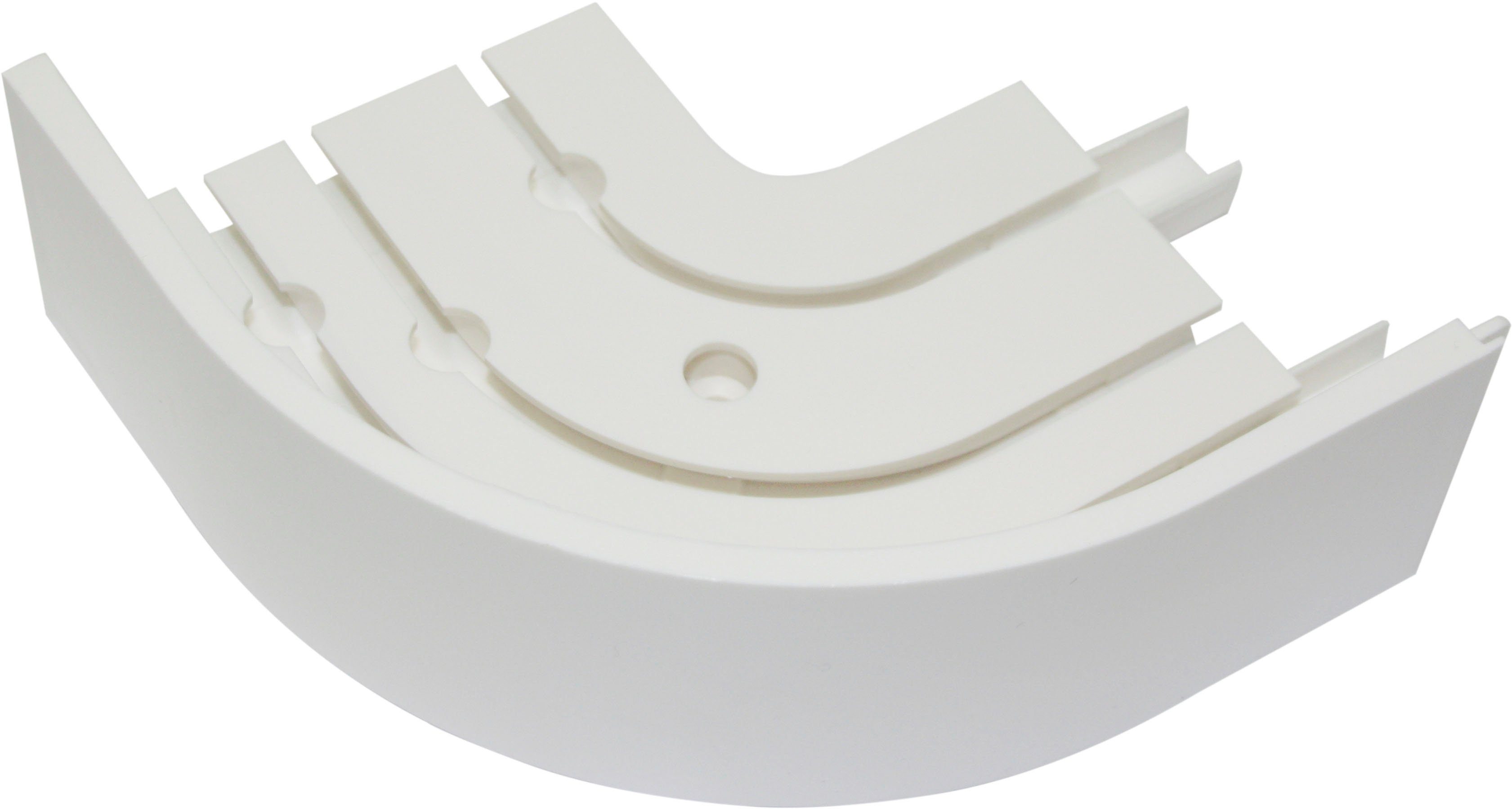 Beschreibung | Kunststoff, 90° Außenbogen, für Vorhangschiene Modell P2Ü mit Blende 5 cm, zum Aufstecken, vorgebohrt für Deckenmontage |