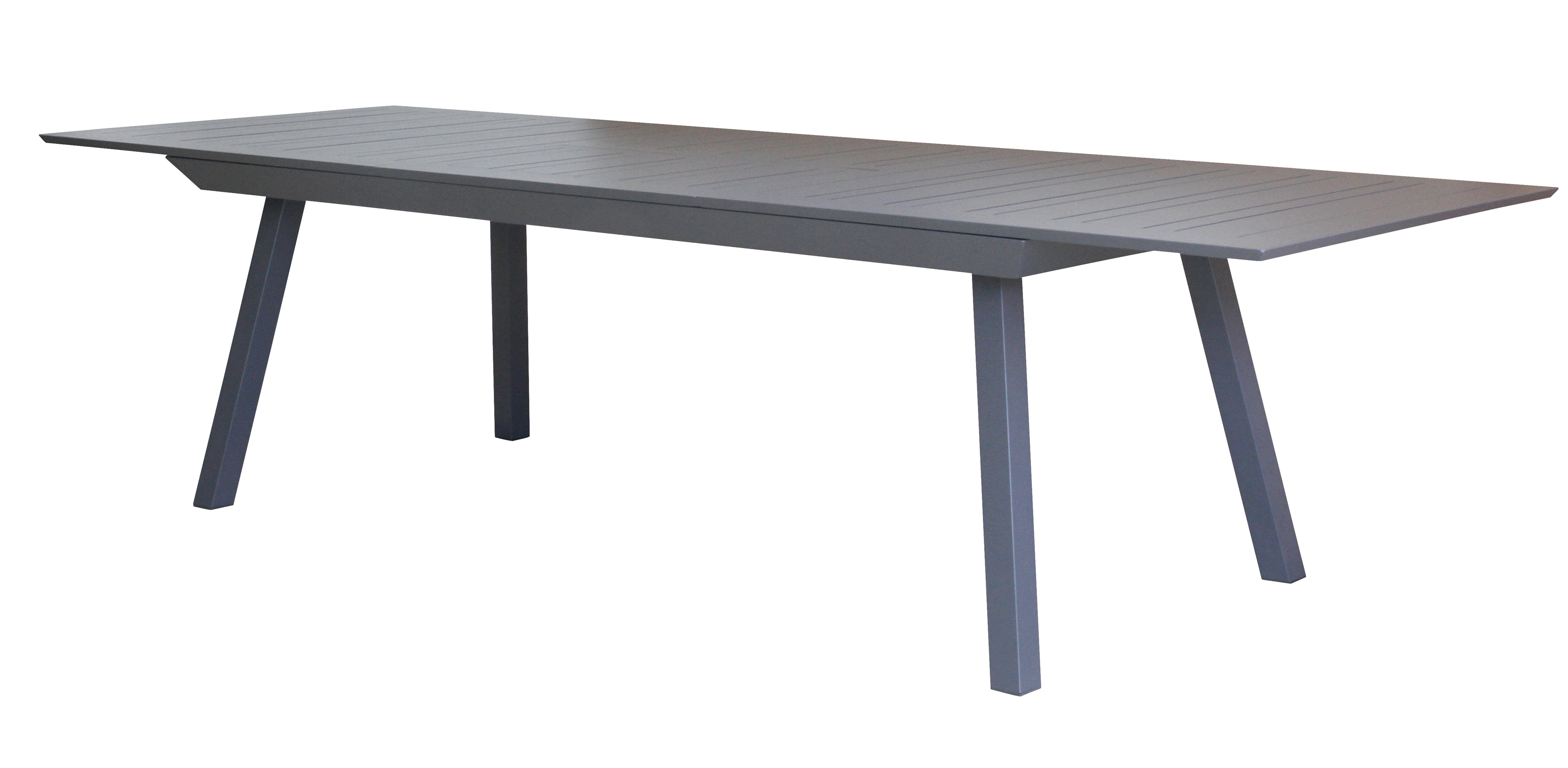 XL Ausziehtisch Estabulo anthrazit - absolut pflegeleicht und unempfindlich - Markenqualität aus dem Hause Gardissimo Sie mögen viel Besuch und alle an einem Tisch? Dann sind Sie mit dem Ausziehtisch Estabulo genau richtig beraten. Mit seiner leichten Ausziehfunktion können Sie mit zwei einfachen Handgriffen den Tisch vergrößern. Nämlich ziehen und umklappen. Die Zusatzplatte, die den Tisch verlängert, kommt durch einfaches umklappen aus ihrer Versenkung und durch Schieben, verbindet sich die Zusatzplatte mit dem restlichen Tisch. Durch die stabile und hochwertige Verarbeitung aus witterungs- und UV-beständigem, robustem und besonders kratzfestem Aluminium punktet der Ausziehtisch Estabulo mit Qualität und Langlebigkeit. Dieses anspruchslose Material kombiniert eine edle Optik und einer hohen Wetterbeständigkeit. Das komplette Gestell besteht ebenfalls aus pulverbeschichtetem Aluminium. Ebenso sind die extravagant designten Tischbeine aus pulverbeschichtetem und somit nicht rostendem Aluminium. Dies ist ein robuster Tisch, mit einer speziellen Optik, der Ihnen eine lange Zeit Freude bereiten wird.