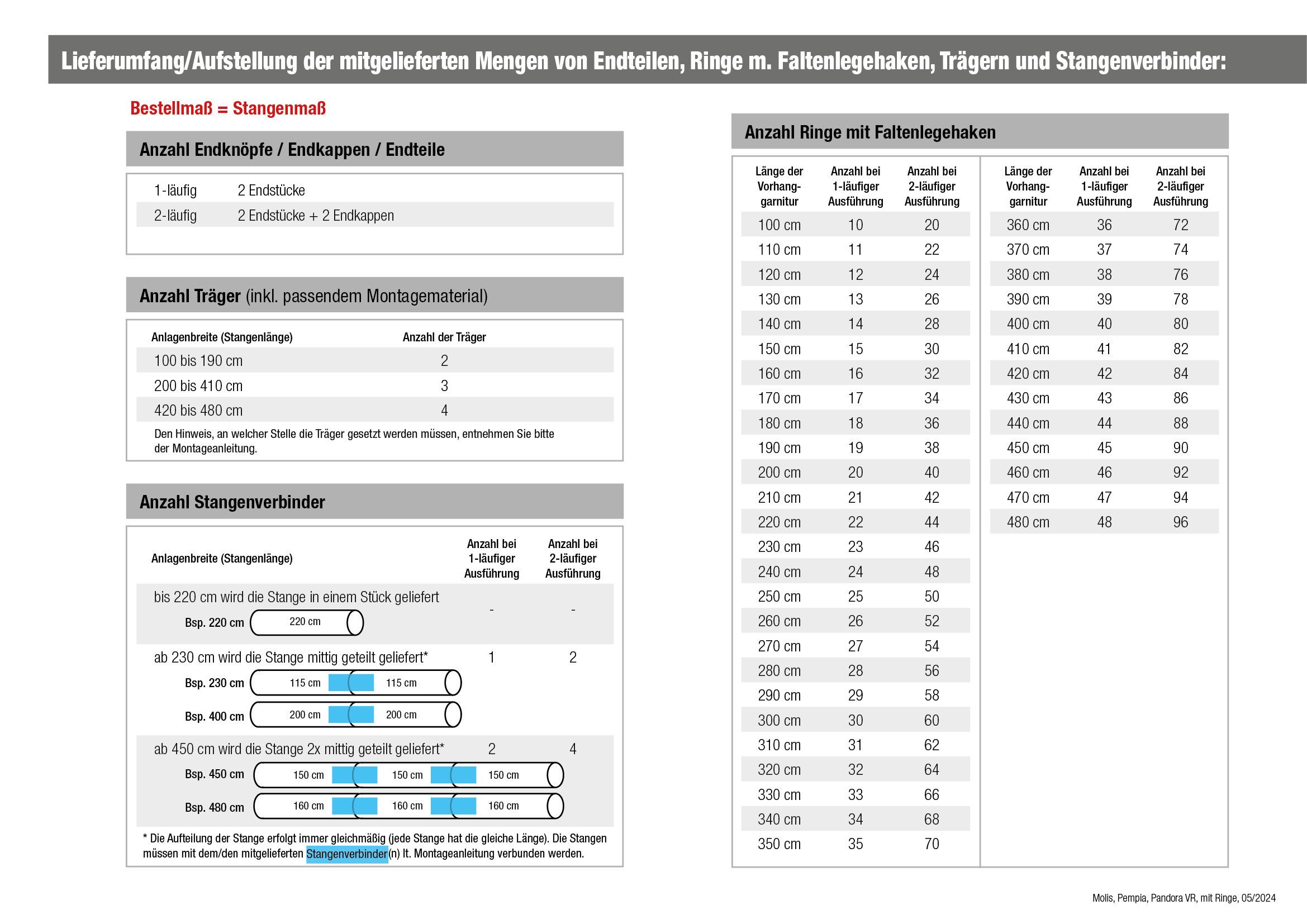 Ab einer Длина von 200 cm wird ein 3. Träger, ab 420 cm ein 4. Träger mitgeliefert.