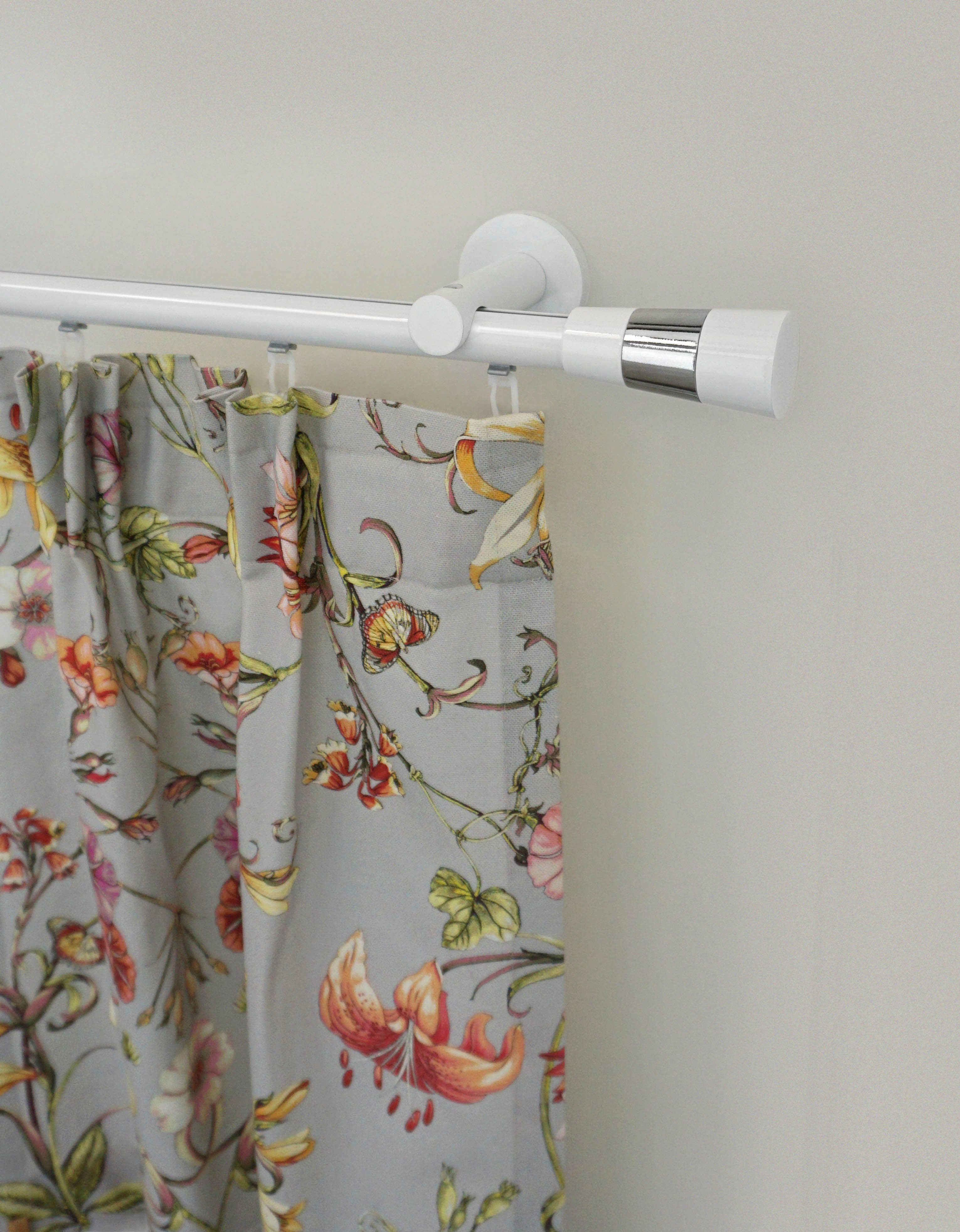 Ab einer Длина von 240 cm wird mittig geteilt geliefert, ab 470 cm wird 2 x geteilt geliefert. Ab einer Длина von 220 cm wird ein 3. Träger mitgeliefert. Ab 400 cm ein 4. Träger.Innenlauf-Rundstangengarnitur WHITE von GARESA mit einem Durchmesser von 20 mm, 1-läufig. Sehr stabile Ausführung und daher auch für mittelschwere Vorhänge geeignet. Das Modell beinhaltet 1 Alu-Innenlaufrohr mit einem Durchmesser von 20 mm , Wandträger (Metall), Endknöpfe (Metall) sowie Gleiter (Kunststoff) . Farbe weiss glanz.