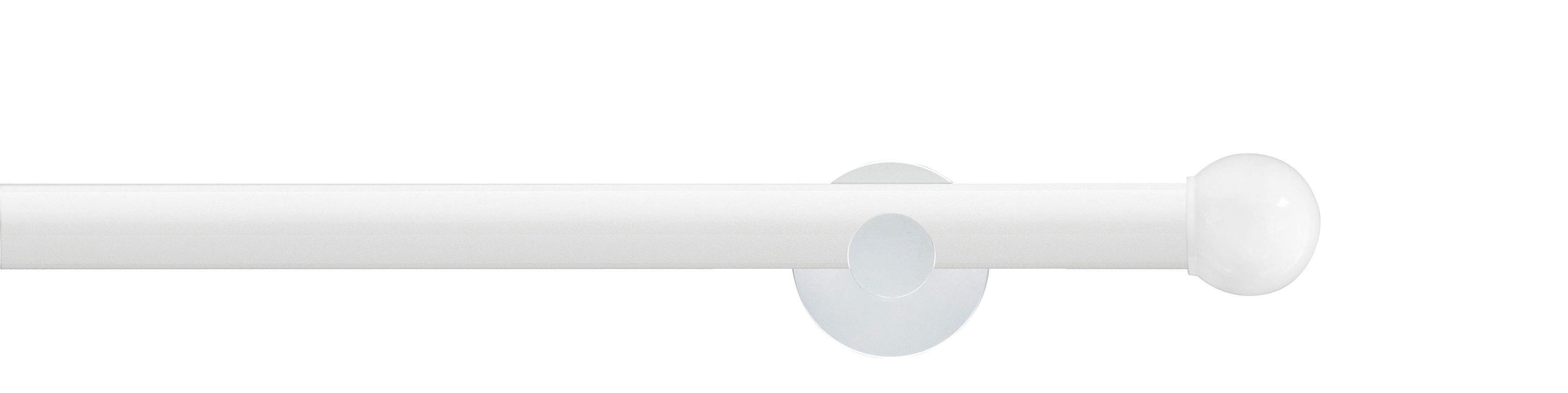 Ab einer Длина von 240 cm wird mittig geteilt geliefert, ab 470 cm wird 2 x geteilt geliefert. Ab einer Длина von 220 cm wird ein 3. Träger mitgeliefert. Ab 400 cm ein 4. Träger.Rundstangengarnitur WHITE von GARESA mit einem Durchmesser von 20 mm, 1-läufig. Sehr stabile Ausführung und daher auch für mittelschwere Vorhänge geeignet. Das Modell beinhaltet ein Stahlrundrohr mit einem Durchmesser von 20 mm , Wandträger (Metall), Endknöpfe Formentor (Metall) sowie Ringe (Metall) + Haken (Kunststoff). Farbe weiss glanz. Dieses Modell ist auch mit anderen Endknöpfen lieferbar.