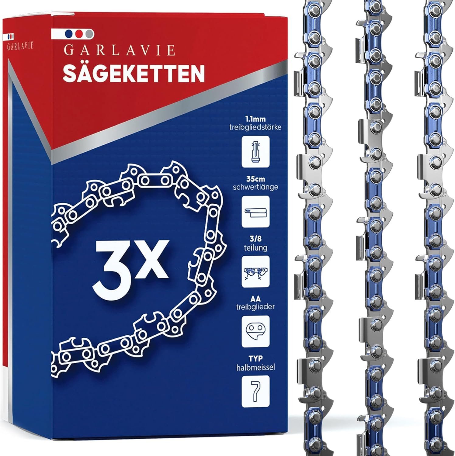 ⛓ CHROMBESCHICHTETER STAHL - Die kettensäge ketten zeichnet sich durch eine hochwertige hartverchromte Oberfläche aus, die die Abriebfestigkeit erhöht. Sie bleibt scharf und ermöglicht schnelle und präzise Schnitte. ⛓ STAHL MIT CHROMBESCHICHTUNG - Die ketten kettensäge zeichnet sich durch eine hochwertige Hartchrom-Oberfläche aus, welche die Abriebfestigkeit erhöht. Sie bleibt scharf und ermöglicht ein zügiges und präzises Schneiden. KETTE MIT MINIMALEM RÜCKSCHLAG - Vibrationsarm und langlebig, für einfache Pflege und Handhabung. Durch Stoßdämpfer-Antriebsglieder und speziellem Tiefenbegrenzer-Design wird ein reduzierter Rückschlag bei gleichbleibender Leistung gewährleistet. HITZEBEHANDELTE VERBINDUNGS-NIETEN - Die Nieten sind speziell wärmebehandelt und abgeschreckt, um die Bindung zwischen den ketten motorsäge zu verstärken. Sie sind besonders widerstandsfähig und brechen nicht leicht.