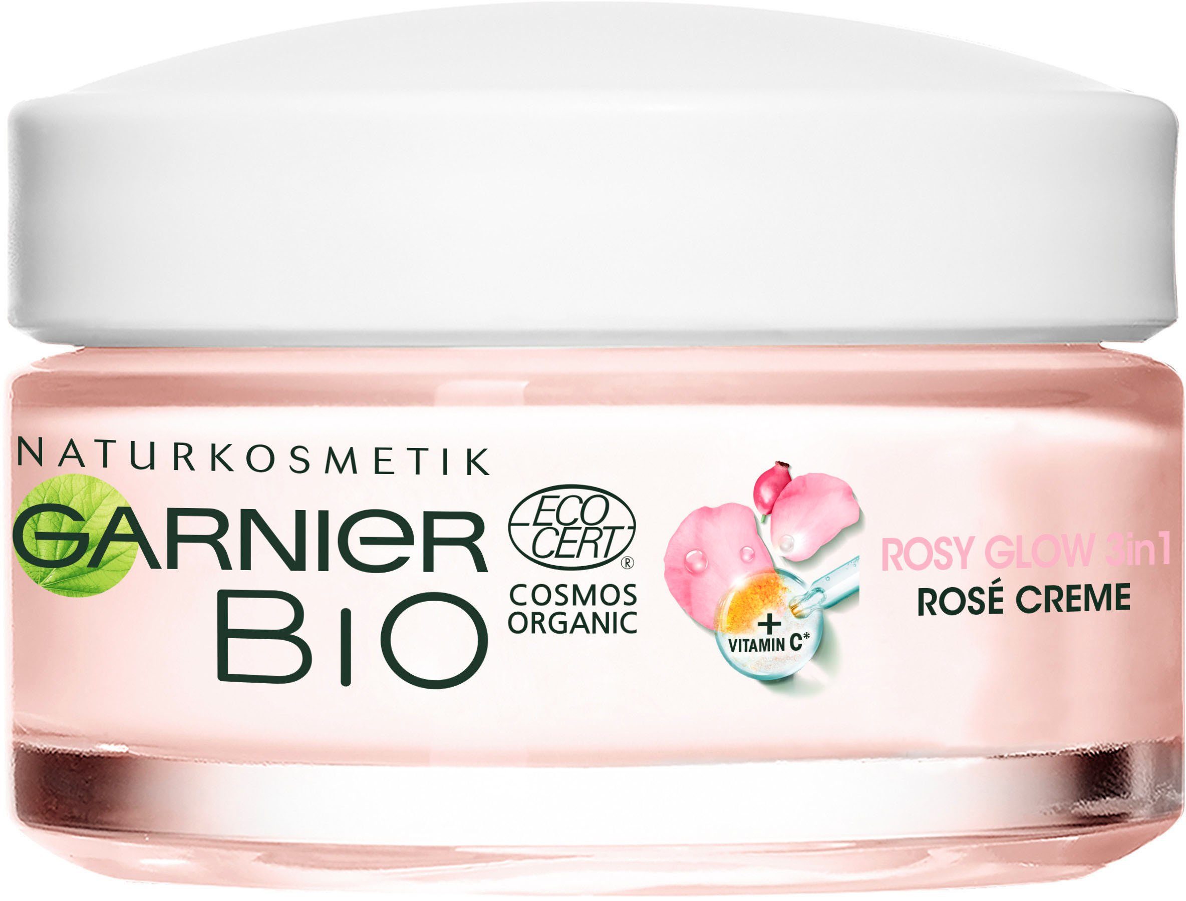 Anwendung | Die Garnier Bio Rosy Glow 3in1 Rosé Creme schenkt der Haut bereits nach der ersten Anwendung einen jugendlichen Glow. Das Bio-Hagebutten-Öl und Vitamin C schützen die Haut vor äußeren Umwelteinflüssen. Vor der Anwendung der pflegenden Creme die Haut gründlich mit Seife oder Waschlotion reinigen. Anschließend die Haut abtrocknen, sodass die Creme porentief einziehen und wirken kann. Die Creme auf die Fingerspitzen auftragen und mit kreisenden Bewegungen sanft und gleichmäßig in die Haut einmassieren. Dann die Creme in die Haut einziehen lassen. Die Garnier Bio Rosy Glow 3in1 Rosé Creme ist für die tägliche Anwendung geeignet und kann morgens und abends aufgetragen werden. |