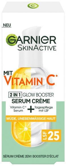 Anwendung | Die Garnier SkinActive Vitamin C Serum Crème eignet sich optimal für die tägliche Anwendung. Zunächst sollte das Gesicht gereinigt werden. Anschließend die Serum Crème auf das Gesicht auftragen. Sollte die Serum Crème nicht sofort austreten, kurz auf den Boden tippen und die Pumpe erneut betätigen. In aufrechter Position lässt sich die Tube mit der nicht-fettenden Formel optimal lagern. |
