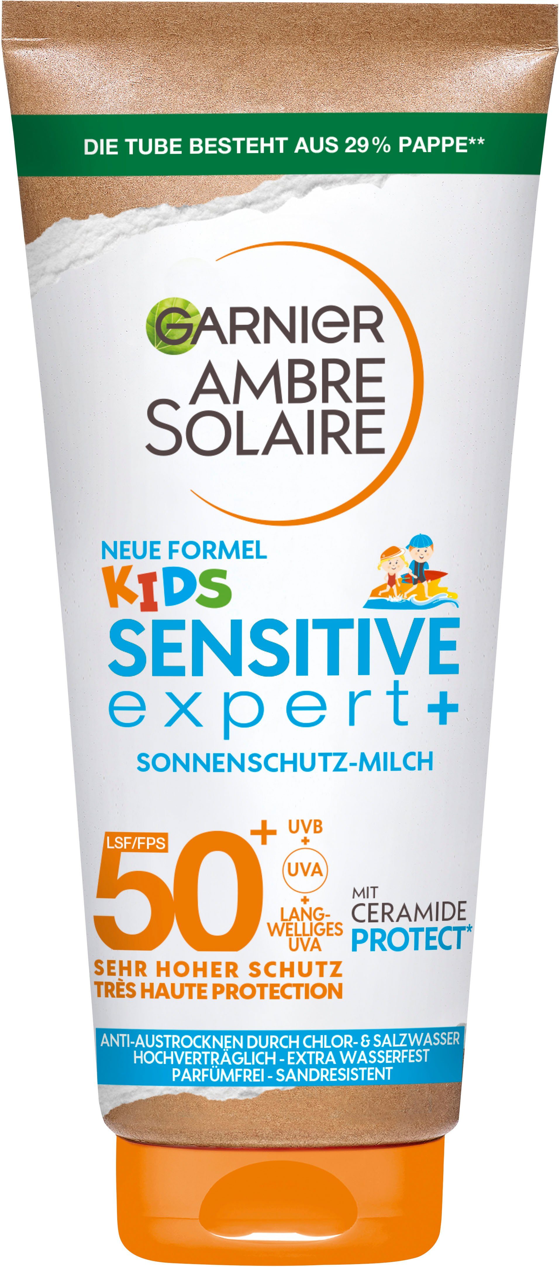 Anwendung | Die Garnier Ambre Solaire Kids Sensitive expert+ Sonnenschutz-Milch mit Lichtschutzfaktor 50+ großzügig auf das Gesicht und den Körper auftragen und gut verreiben. Auch trotz Sonnenschutz ist die direkte Sonne zu vermeiden. Die Sonnenschutz-Milch sollte außerdem regelmäßig neu aufgetragen werden, speziell nach dem Baden oder nach dem Schwitzen. Falls das Produkt in die Augen gelangt, diese sofort mit klarem Wasser vorsichtig ausspülen. Zusätzlich zu starker Sonneneinstrahlung empfiehlt es sich, ausreichend Schutzkleidung zu tragen. |