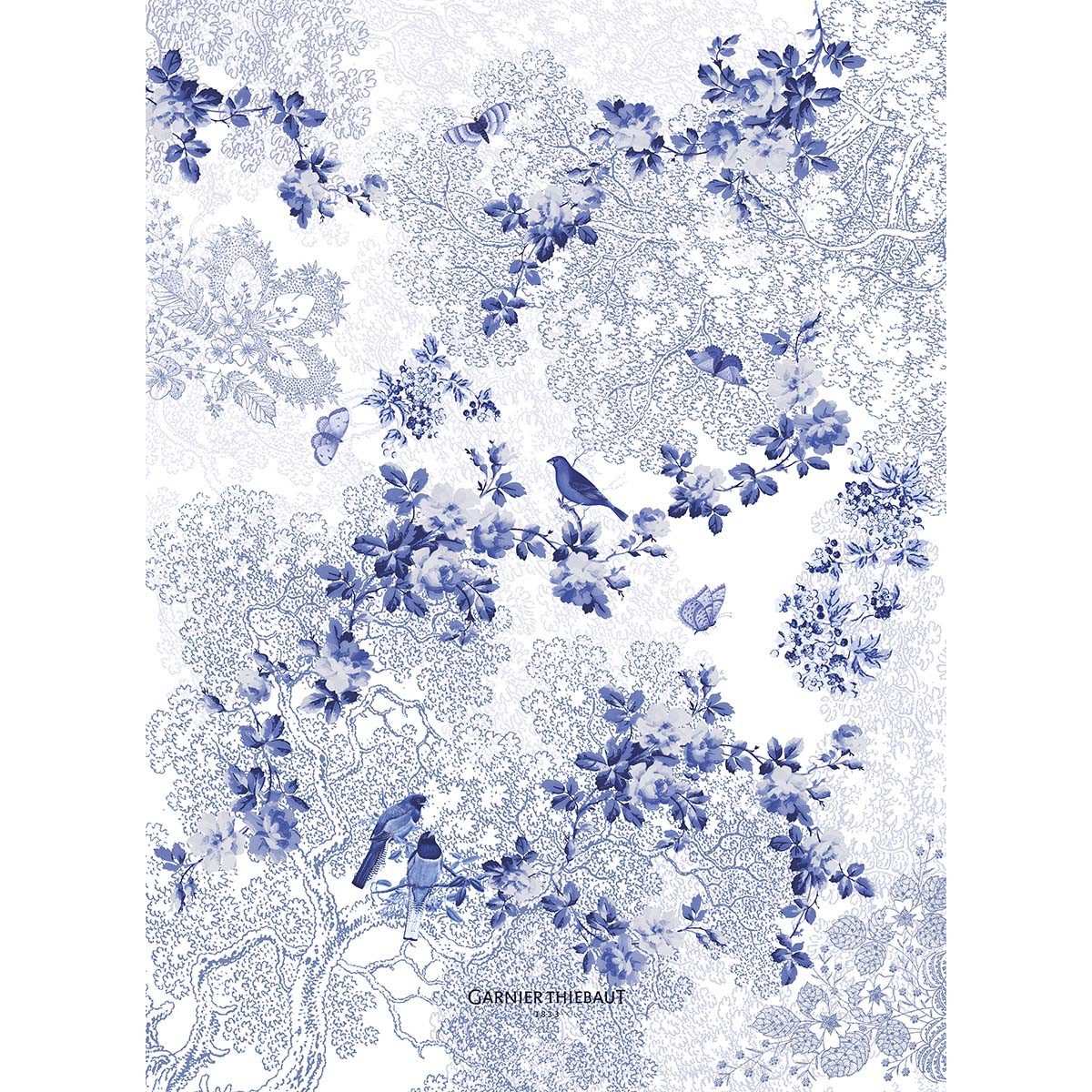 Pflegehinweise | MotivbeschreibungDieses Geschirrtuch zeigt ein detailliertes, blau-weißes Muster im Stil von Toile de Jouy oder chinesischem Porzellan. Das Motiv ist von üppiger Natur inspiriert und zeigt blühende Zweige mit Vögeln und Schmetterlingen, die sich vor einem Hintergrund aus filigranen Bäumen und Paisley-Elementen abheben. Die Farbpalette beschränkt sich auf ein tiefes Kobaltblau auf strahlend weißem Grund, was dem Design eine klassische und elegante Ästhetik verleiht. |