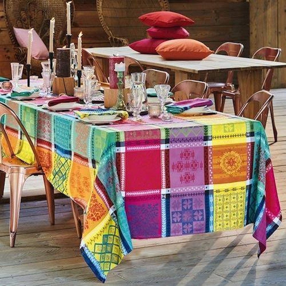 Mit der Garnier Thiebaut Mille Pueblo Fiesta Tischdecke holst du dir ein Stück Lebensfreude und fröhliche Farben in dein Zuhause. Diese Tischdecke überzeugt mit ihrem leuchtend-bunten Patchworkmuster und verspielten Ornamenten. Sie zieht mit ihrer lebendigen Farbpalette und den traditionellen Einflüssen sofort alle Blicke auf sich. Das Design von Mille Pueblo Fiesta ist ein wahres Farbenspiel! Pink- und Rottöne, kombiniert mit Türkisgrün, Blauvarianten, Gelb und Orange, verleihen der Tischdecke ihre dynamische Ausstrahlung. Diese kräftigen, harmonischen Farben werden durch zarte weiße Ornamentstreifen miteinander verbunden, sodass ein faszinierendes Patchworkmuster entsteht, das im gesamten Raum leuchtet und eine warme Atmosphäre verbreitet. Neben ihrem wunderschönen Design überzeugt die Mille Pueblo Fiesta Tischdecke auch mit hochwertiger Verarbeitung und langlebigen Materialien. Garnier Thiebaut ist bekannt für seine exzellente Qualität und sorgt dafür, dass die Tischdecke auch bei häufigem Gebrauch ihre Farben und Form behält. Zudem ist sie pflegeleicht und somit ideal für den täglichen Gebrauch oder besondere Anlässe.