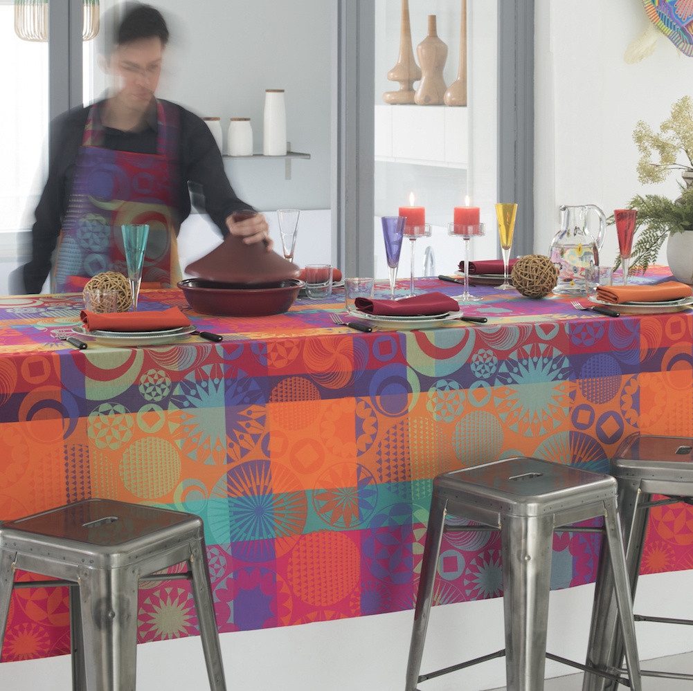 Wenn du deinen Tisch mit Farbe, Energie und modernem Design zum Strahlen bringen möchtest, dann ist die Garnier Thiebaut Tischdecke Mille Tornades Pop die perfekte Wahl. Mit ihrem verspielten Kreismuster in leuchtenden Farben bringt sie Dynamik und Fröhlichkeit in dein Zuhause – ideal für fröhliche Dinner-Abende, ausgelassene Brunches oder einfach eine extra Portion gute Laune im Alltag. Das Design der Mille Tornades Pop Tischdecke ist inspiriert von Wirbelwinden aus bunten Farben. Die sich überlagernden Kreise erzeugen eine spannende optische Bewegung und wirken, als würden sie auf der Tischdecke tanzen. Die Farbpalette ist ein wahres Feuerwerk aus Rot, Blau, Gelb, Grün, Orange und Lila, das für eine lebendige, moderne Ästhetik sorgt. Wie alle Produkte von Garnier Thiebaut überzeugt auch diese Tischdecke mit einer erstklassigen Verarbeitung. Hergestellt aus hochwertiger 100% Baumwolle, bietet sie nicht nur eine weiche Haptik, sondern auch eine außergewöhnliche Langlebigkeit.