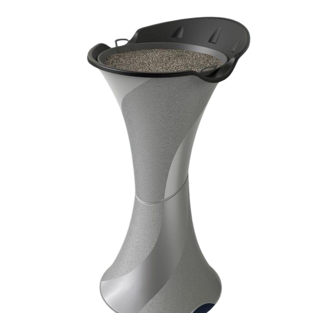Die Handhabung des Aschenbechers für Draussen stehend ist denkbar einfach: Der im Lieferumfang enthaltene Sand wird in die Schale gefüllt, auf die das Einlegegitter aus hitzebeständigem Metall gelegt wird. Dieses Gitter verhindert ein Nachglühen der Zigaretten und ermöglicht eine hygienische und schnelle Entleerung des Standaschenbe