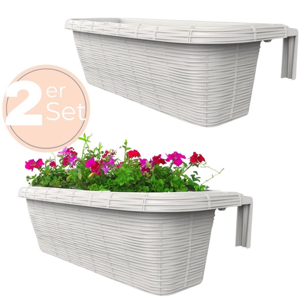 Die im Set enthaltenen Halterungen bestehen aus robustem Kunststoff und sind für Geländer mit einer Breite von 3 bis 11 cm einstellbar. Sie garantieren einen sicheren Halt und sind besonders stabil, selbst bei windigen Bedingungen. Zur zusätzlichen Sicherheit sind die Blumenkästen an der Unterseite mit weiteren Stabilisatoren ausgestattet, die verhindern, dass sie bei Sturm wackeln oder herunterfallen.