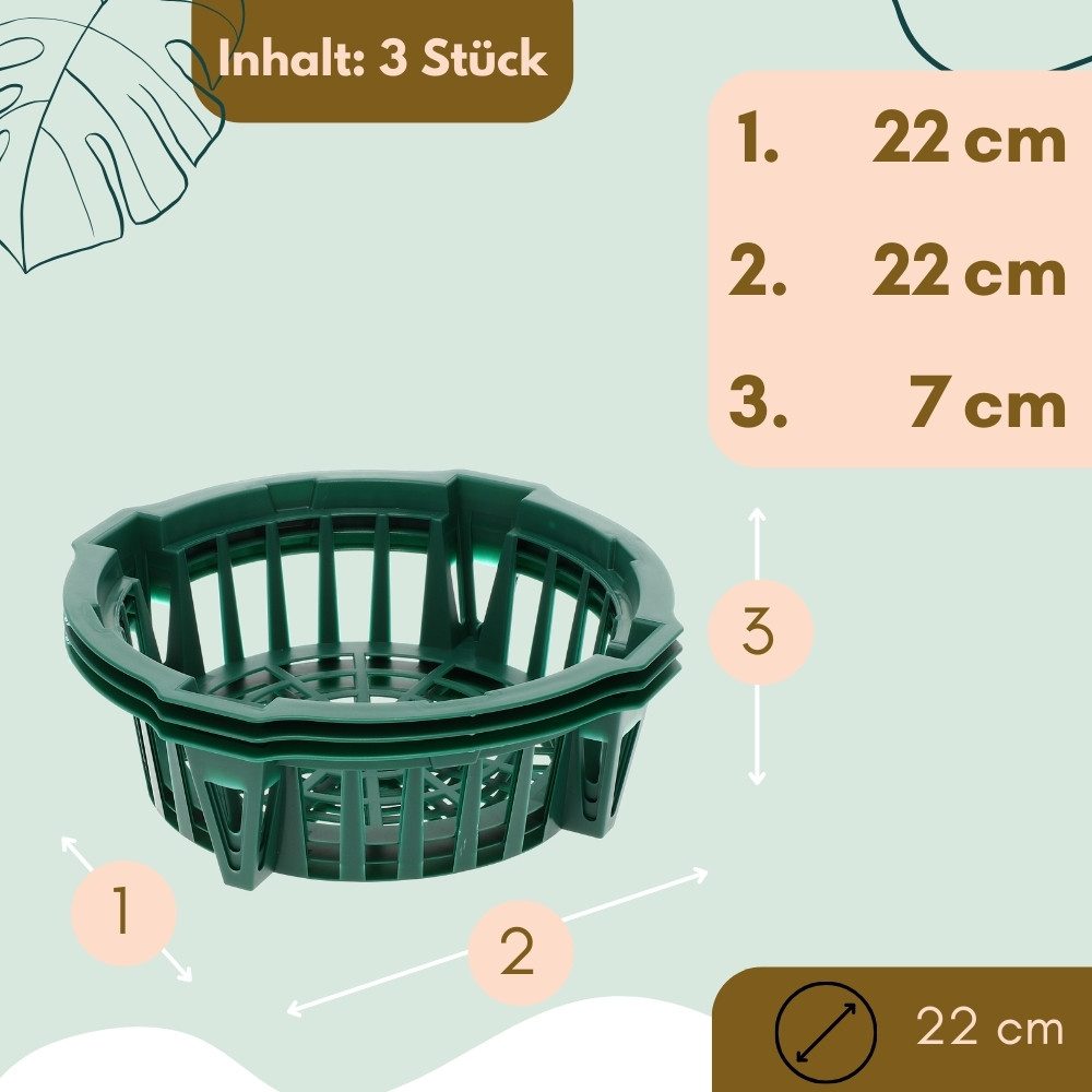 3 Stück in Ø 22 cm, Höhe 7 cm