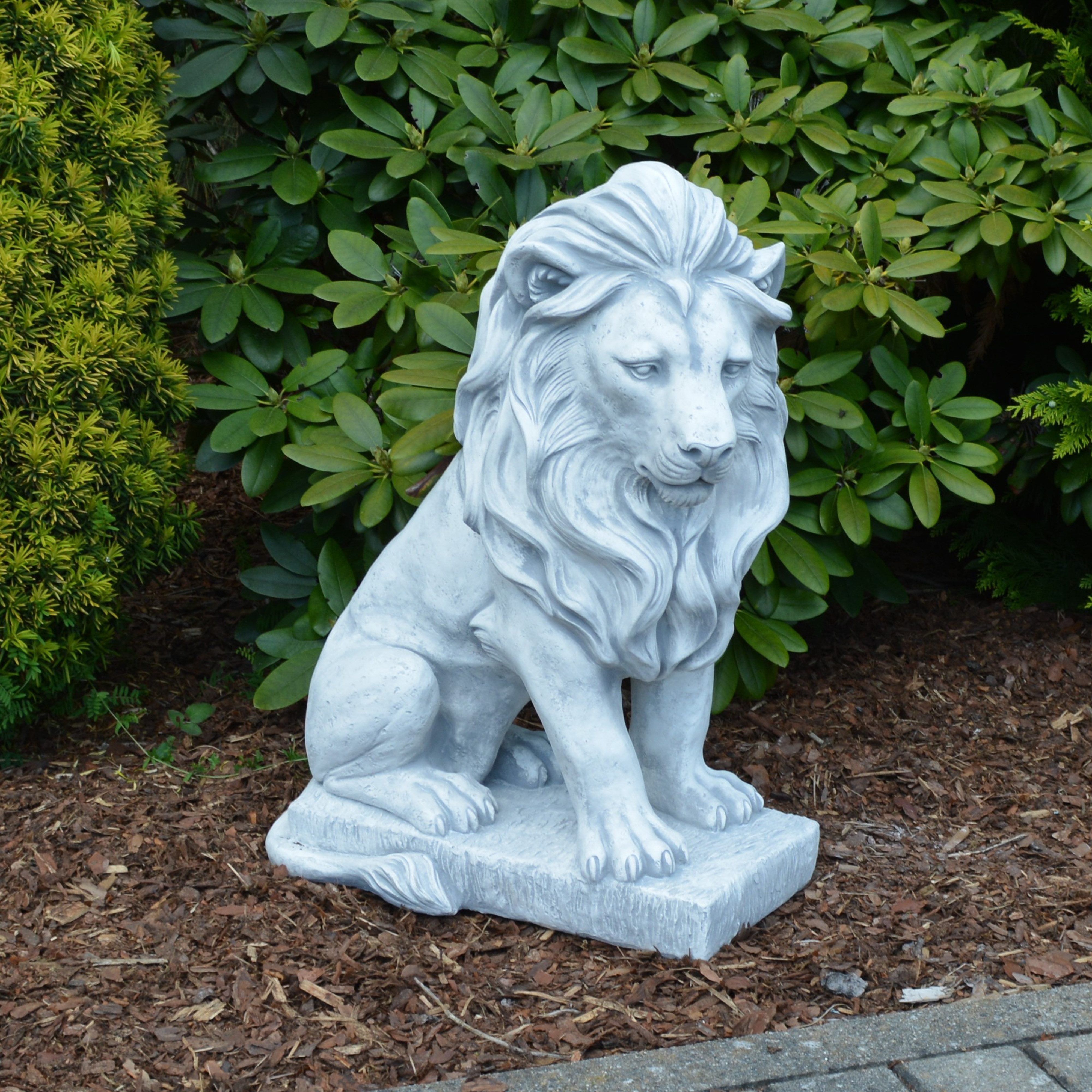 Gestatten: Mein Name ist King. Wie König – König der Tiere. King ist ein imposanter Torwächter mit 62 Zentimetern Höhe. Mit seinen mächtigen Tatzen stützt er sich auf einen stabilen Sockel, sein Blick ist geradeaus gerichtet. Besonders beeindruckend ist seine prächtige Mähne. Eindrucksvoll kann der Eingang zum Garten oder zum Haus mit zwei dieser markanten Steinfiguren gestaltet werden.