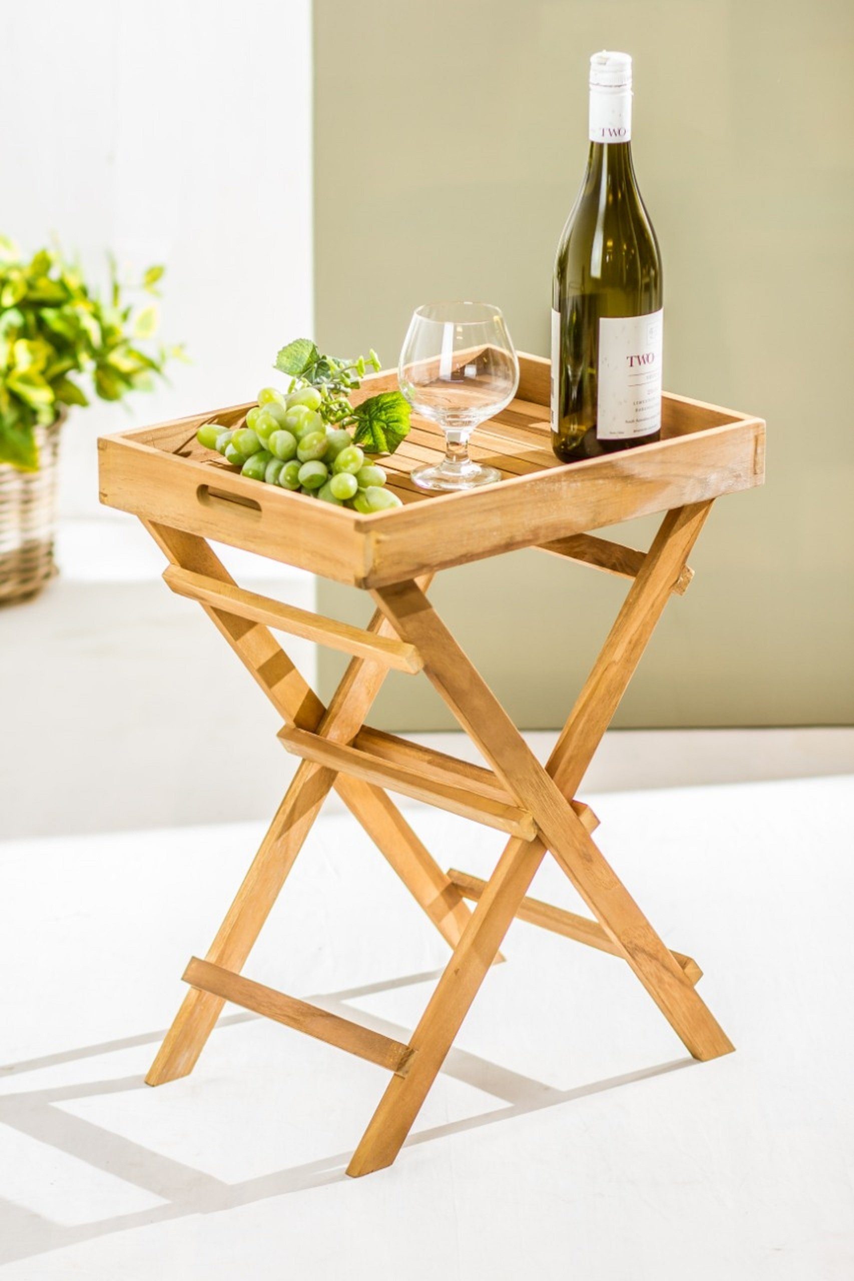 Klappbarer Beistelltisch aus Teak mit abnehmbarem Tablett