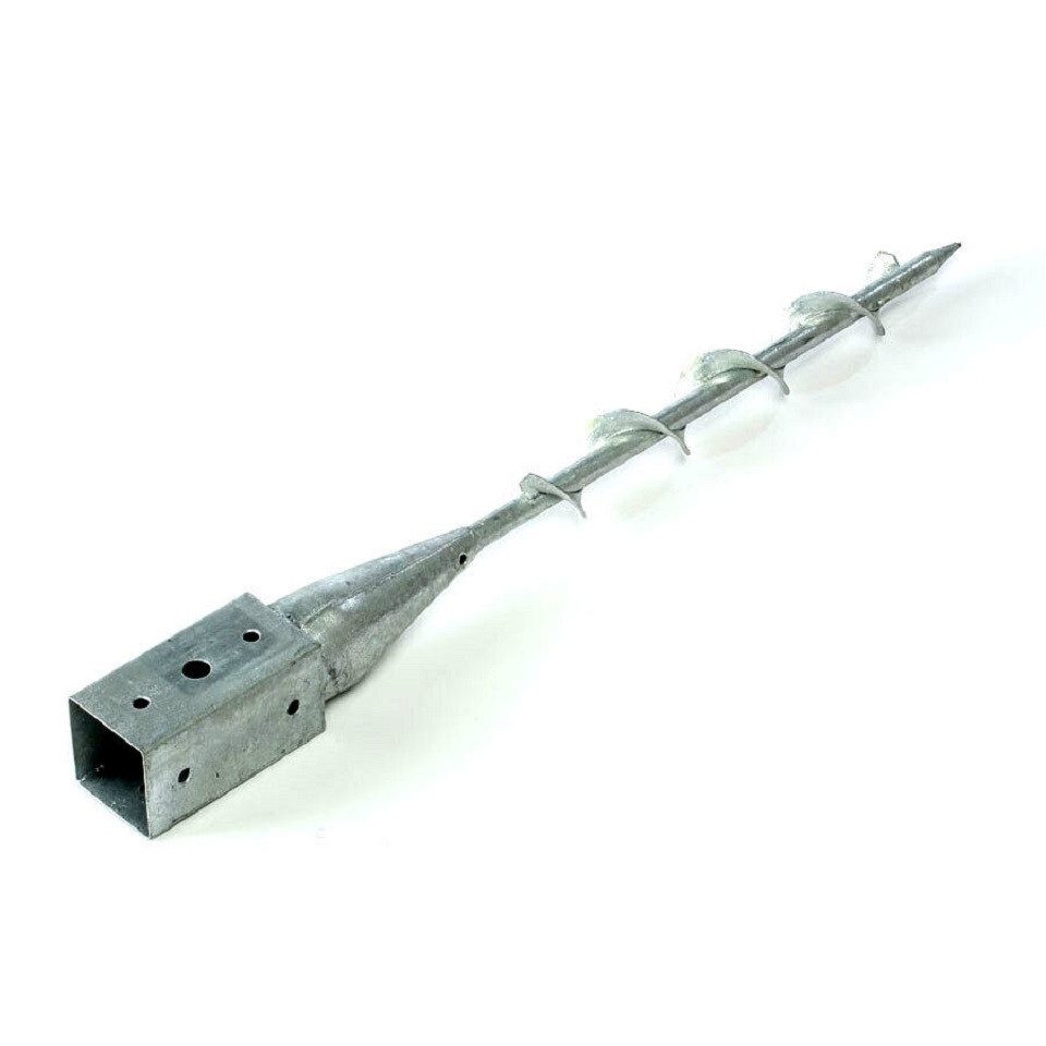 Spiral-Pfostenträger für Kantholz-Pfosten 70x70 mm bzw. 90x90 mm. Der Pfostenschuh kann ins Erdreich eingedreht werden. Der Pfostenträger aus verzinktem Stahl hat eine Длина vom 795 mm und eignet sich für die Befestigung von Spieltürmen, Schaukeln, Pavillons oder Zäune. Falls das Erdreich zu locker ist, kann der Pfostenträger auch einbetoniert werden.