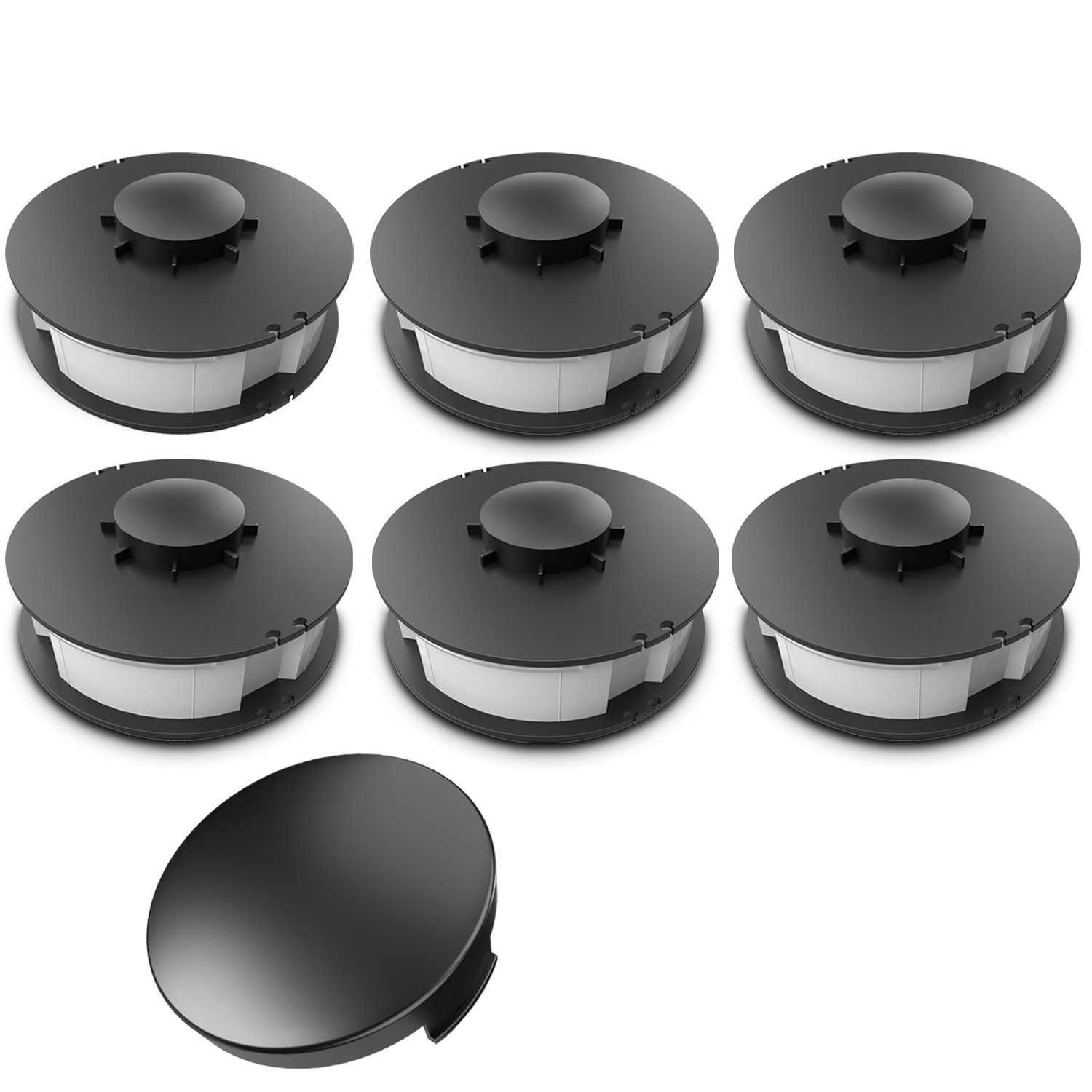 6-teiliges Ersatzspulen-Set passend für ALDI Gardenline Elektro-Rasentrimmer. Inkl. 1x Timmer-Haube