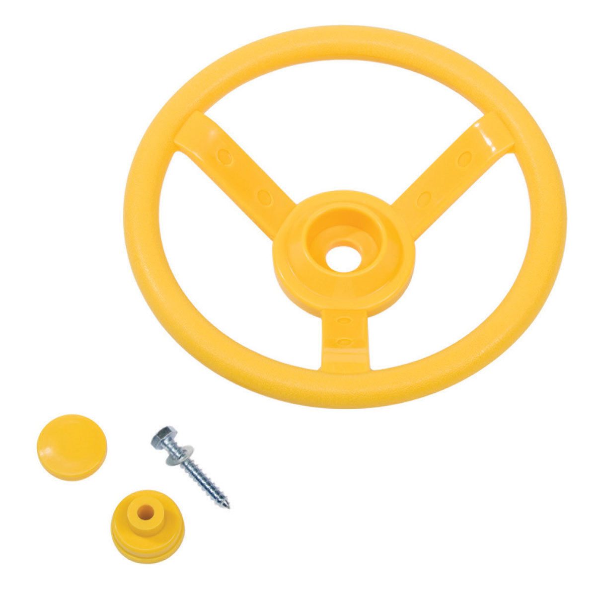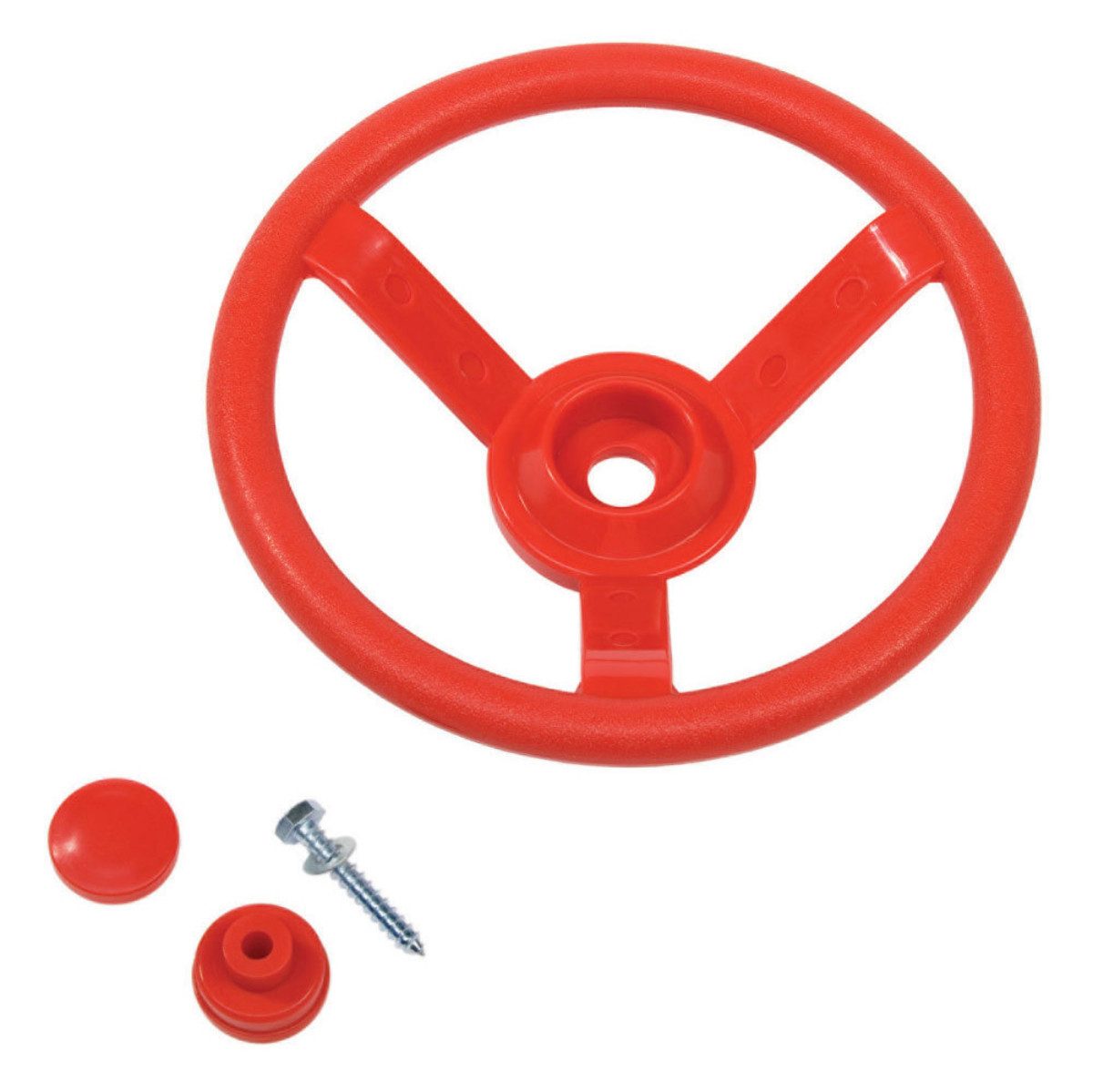 Dieses Lenkrad ist aus wetterfestem Kunststoff hergestellt und kann ganz einfach mittels einer Schraube auf einem Holzuntergrund befestigt werden. Es ist für Kinder jeden Alters geeignet und kann für Rollenspiele und Lernspiele verwendet werden.