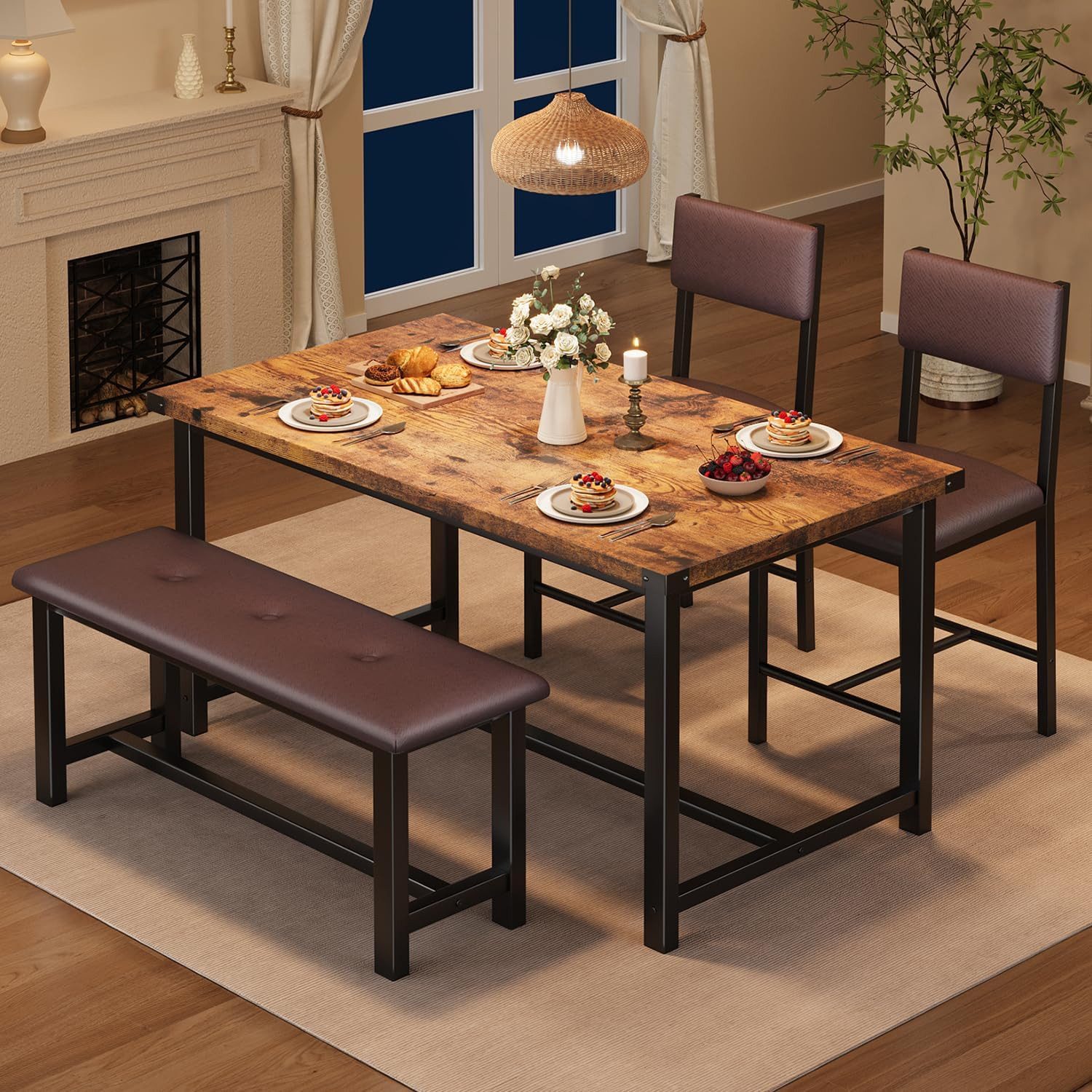 Genießen Sie außergewöhnlichen Komfort mit diesem Esstisch-Set. Es besteht aus zwei gepolsterten Esszimmerstühlen und einer Bank mit dicken Kissen für ein gemütliches Sitzerlebnis. Der robuste Rahmen aus hochwertiger MDF-Platte und massivem Stahl sorgt für lange Haltbarkeit. Verabschieden Sie sich von herkömmlichen Stühlen und genießen Sie den erhöhten Komfort unserer gepolsterten Stühle und der Bank.