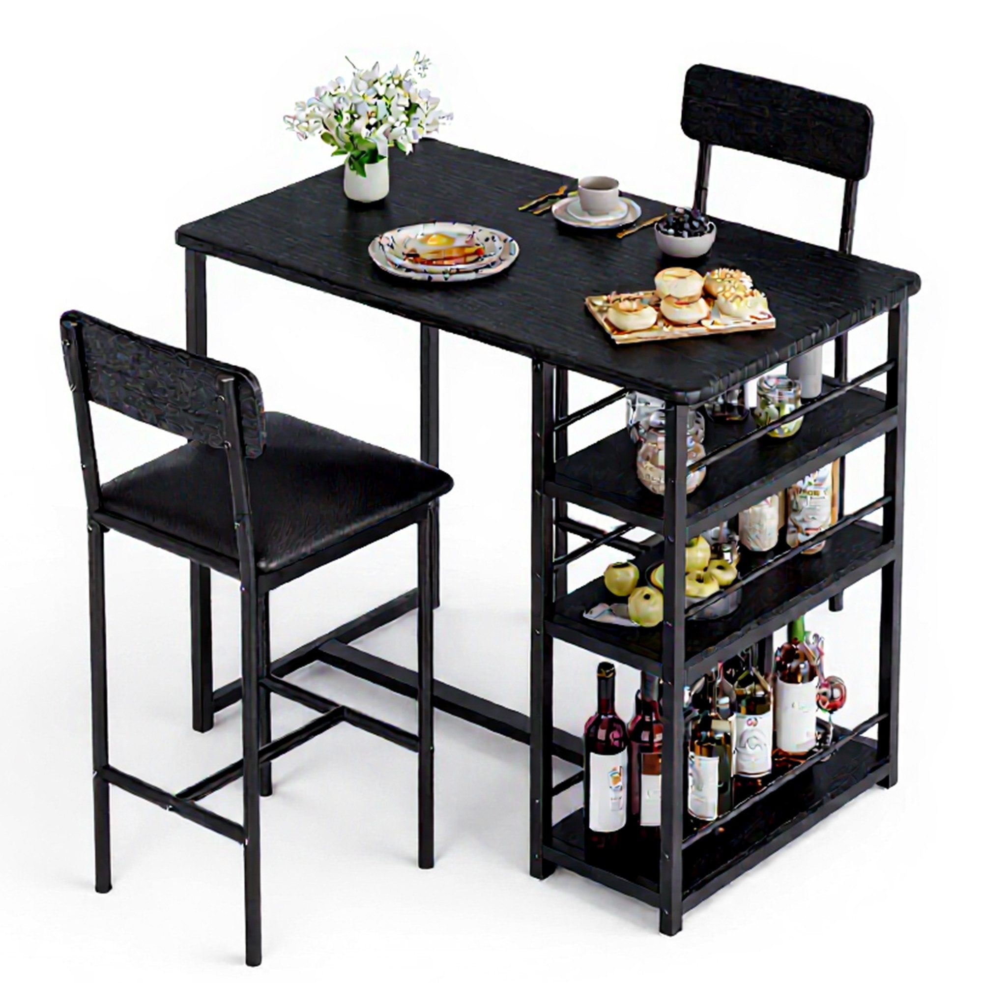 Dieser kleine Esstisch mit einem Metallrahmen bietet Haltbarkeit und Stabilität. Die hochwertige MDF-Tischplatte verbessert die Gesamthaltbarkeit. Auf einer Seite verfügt offenes Regal mit 3 Ebenen für Geschirr, Gewürze und Snacks, mit zusätzlichen Zäunen, um ein Herunterfallen von Gegenständen zu verhindern.