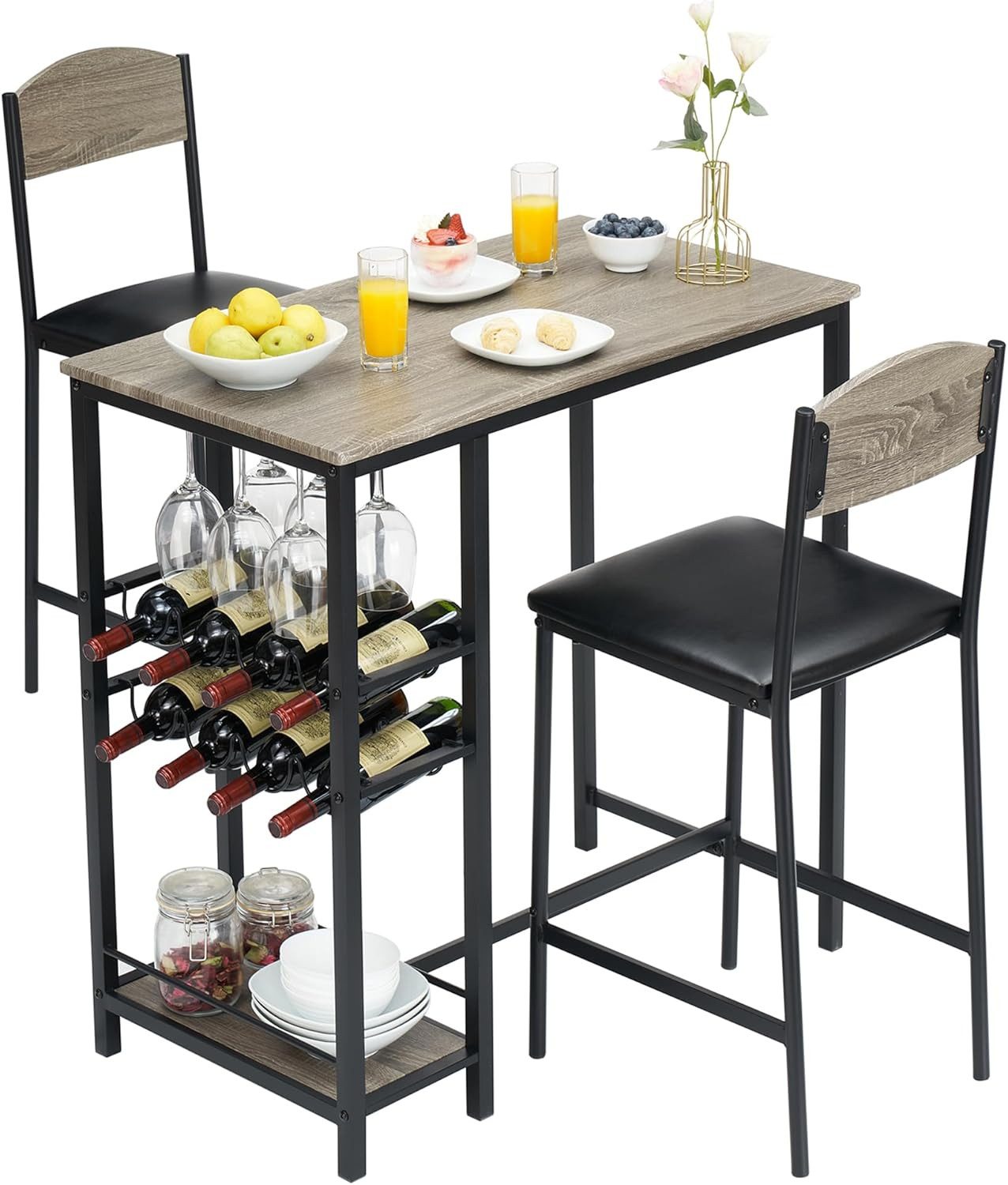BEQUEMER BAR-TISCH: Dieses Bar-Set aus hochwertigem Holz und robustem Metall ist besonders langlebig. Die Barhocker sind mit weichen, dicken Schaumstoffpolstern ausgestattet und bieten ein Sitzerlebnis, das herkömmlichen Modellen weit überlegen ist.