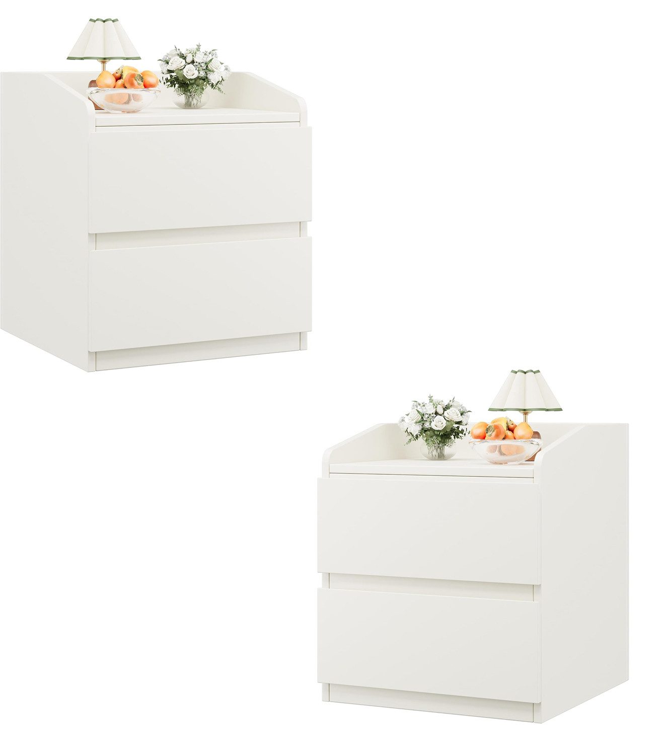 Dieser Nachttisch bietet großzügige Aufbewahrungsmöglichkeiten und verfügt über 2 Schubladen und eine flache Tischplatte mit 3 Seiten Schutzplatten. Die Maße der Schublade betragen 20,2 Zoll (B) x 13,4 Zoll (T) x 4,72 Zoll (H), was einen breiteren und perfekten Platz für private oder staubdichte Gegenstände bietet, während die Tischplatte ideal ist, um Bücher, Dekorationsgegenstände oder häufig verwendete Gegenstände in Reichweite aufzubewahren.
