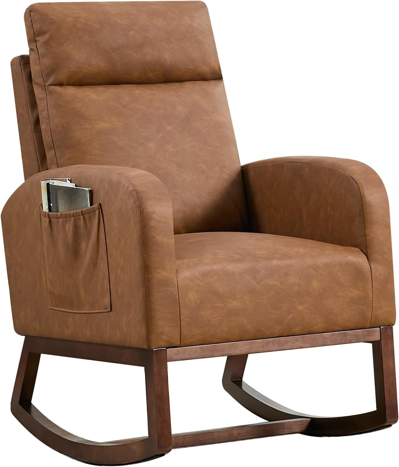 Modernes Design und glatte Linien verleihen diesem Schaukelstuhl einen stilvollen und eleganten Look. Jede Armlehne verfügt über eine große Seitentasche für Zeitschriften und TV-Controller.