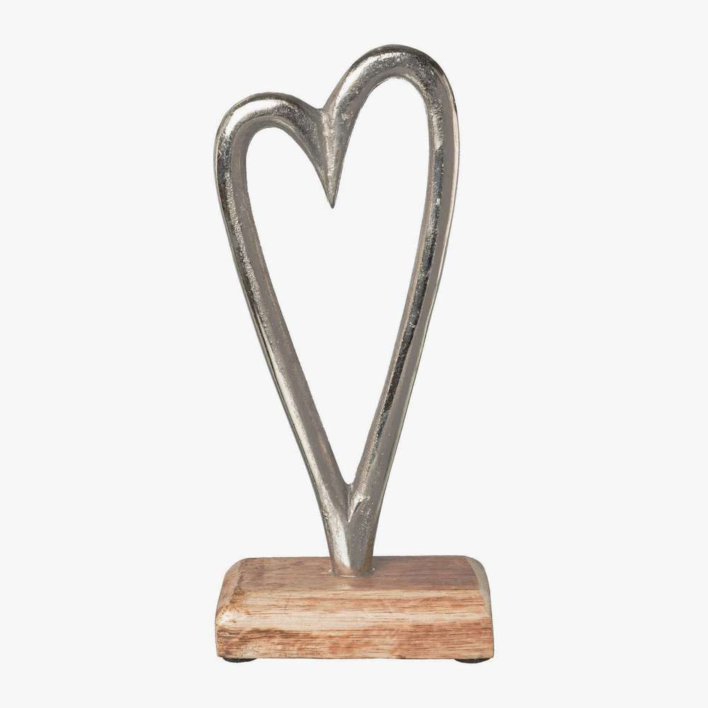 Ein Herz aus Aluminium montiert auf einen Holzsockel.