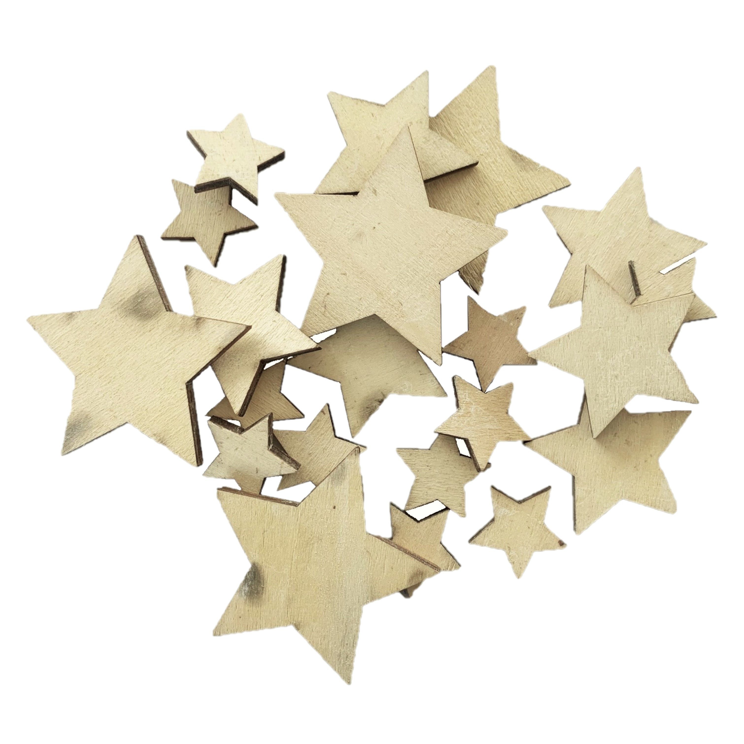 HOLZ-DEKOSTREU STERN 20 Teile. Ca 7/5/3cm. NATUR