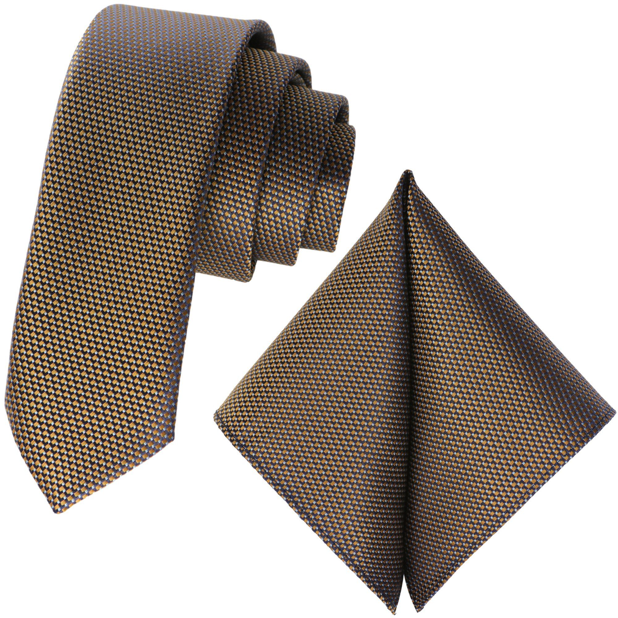 - 2er SET: Fein Karierte Krawatte & Einstecktuch in Premiumqualität